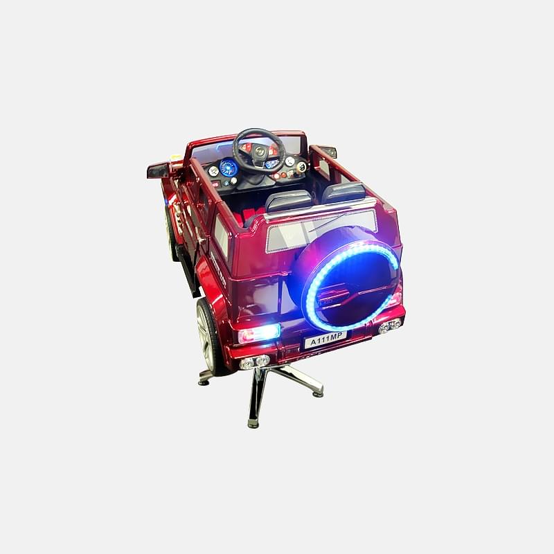 Цвет вишневый металлик . На гидравлике. Электромобиль питается от 6 v аккумуляторной батареи. Машинка оснащена светящимися фарами, сигналами,подсветкой кузова, музыкой и ремнем безопасности.