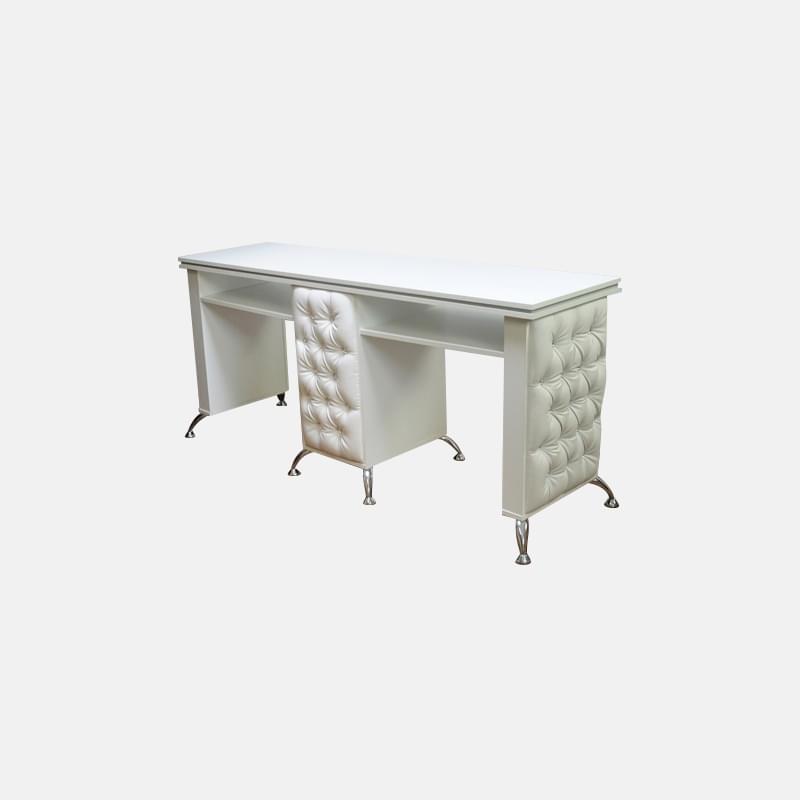 Если вы хотите сэкономить свободное пространство в собственном маникюрном салоне и в то же время предоставить комфортные условия работы для своих мастеров, обязательно рассмотрите двойной маникюрный стол «Урбано». Это два полноценных рабочих места и одна общая тумба на 4 ящика, где можно хранить все необходимое в работе.