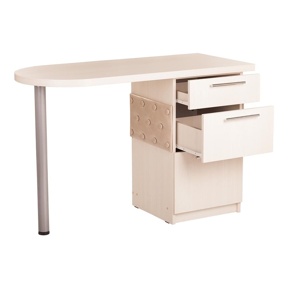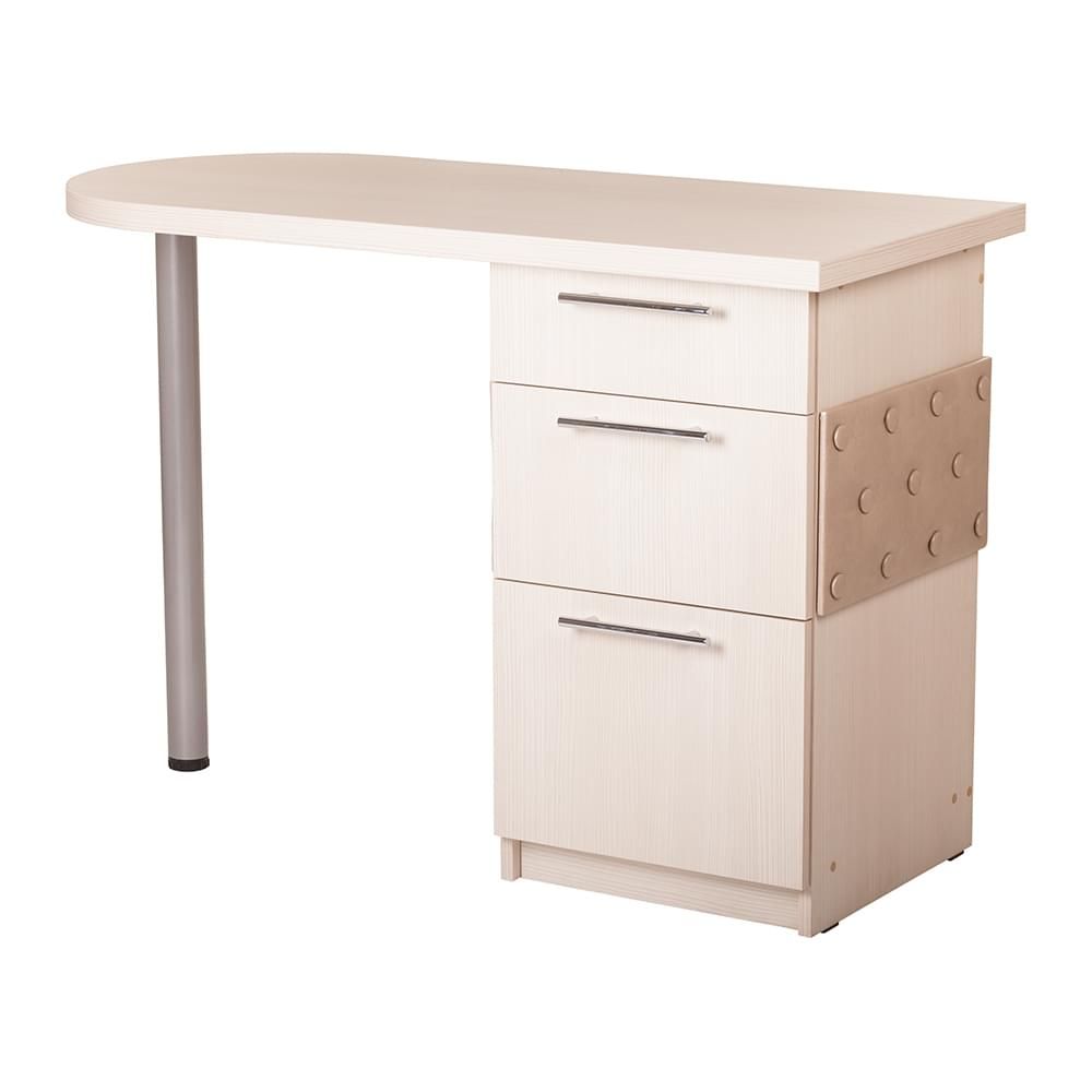 Маникюрный стол Лада-Софт – необычное, крутое изделие, которое гарантированно дает результат, включая женское название линии и новый подход к дизайнерской, простой работе с перспективной точки зрения. Этот комплект состоит из деревянной столешницы, хромированной ножки круглой формы, красивой тумбы с тремя разделами и полками, боковой накладки с узорами в виде тиснения пуговиц и хромированных ручек. Стиль поражает воображение. Он настолько идеально вписывается в каждый угол помещения, что иногда можно увидеть тонкие линии необычайного шедевра. Надежное, гарантия сто процентов от мировой индустрии моды. Фишка захватила рынок. А этот комплект стал номером один для потребителей.