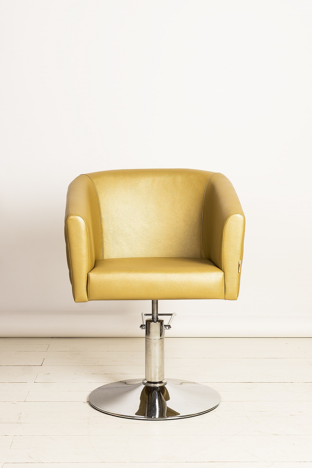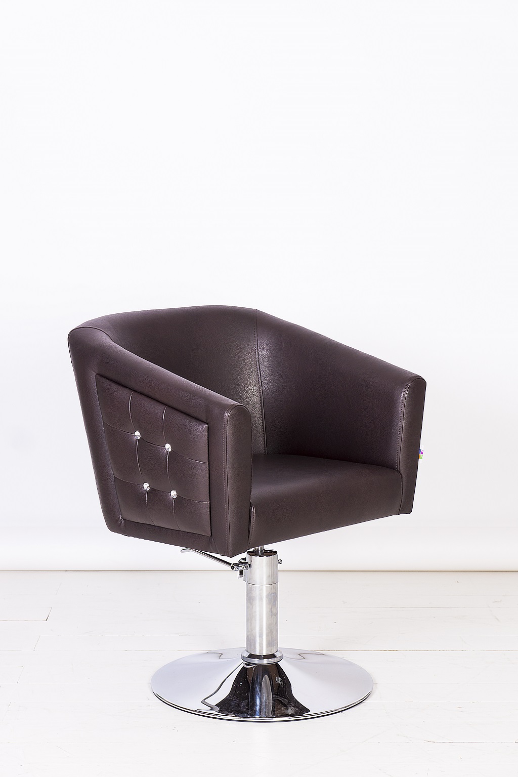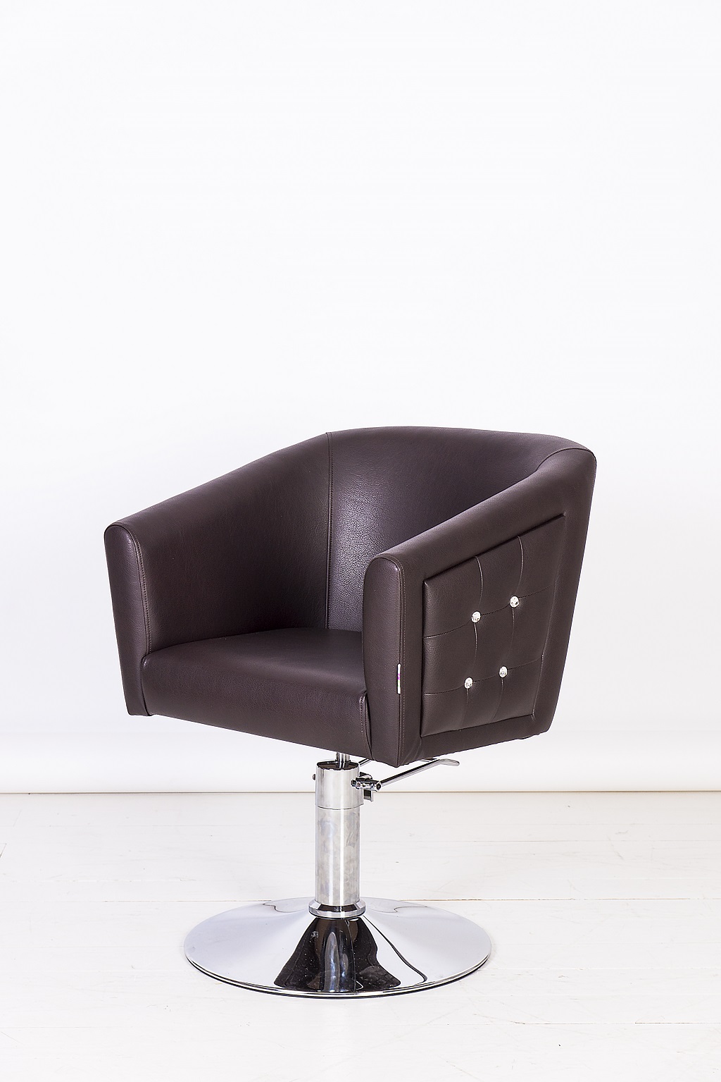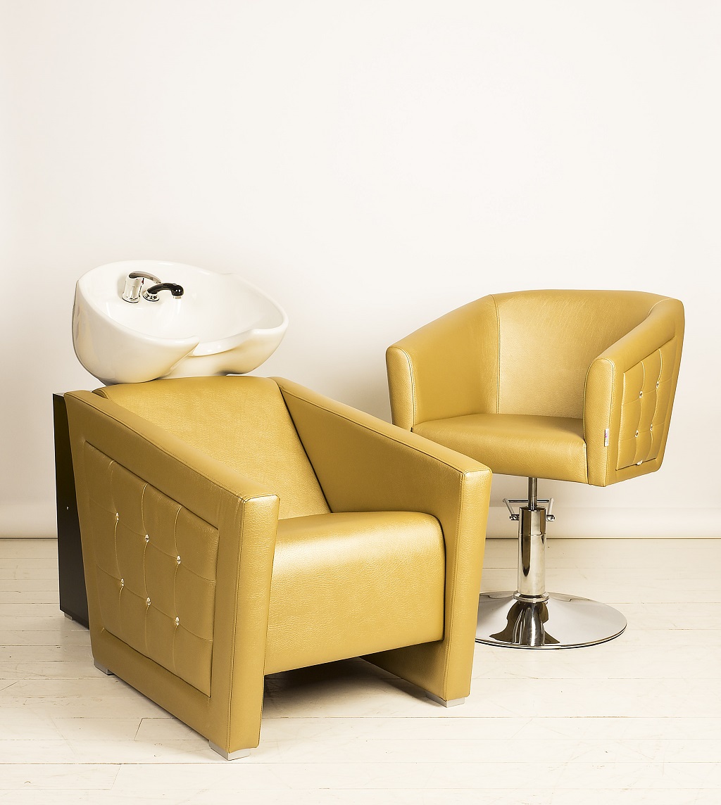 Кресло обшито экокожей высокого качества, материал не боится пятен от краски и укладочных средств. Все следы творческой работы мастеров легко удаляются с поверхности изделия.