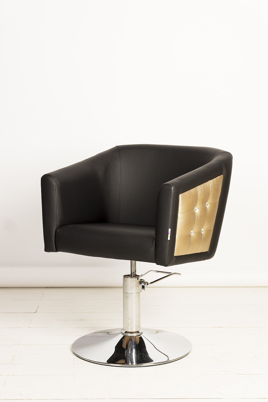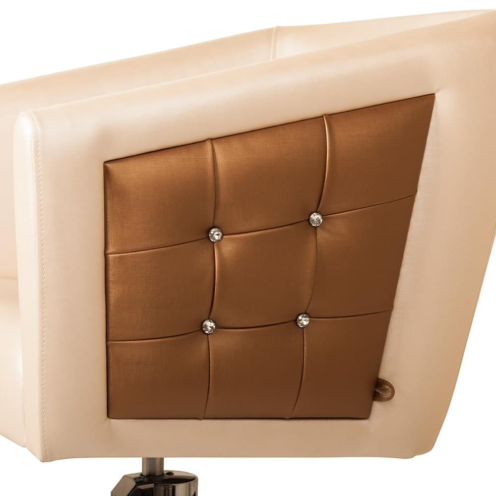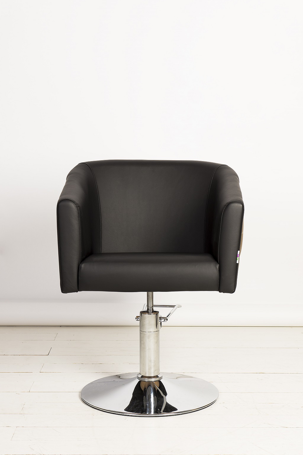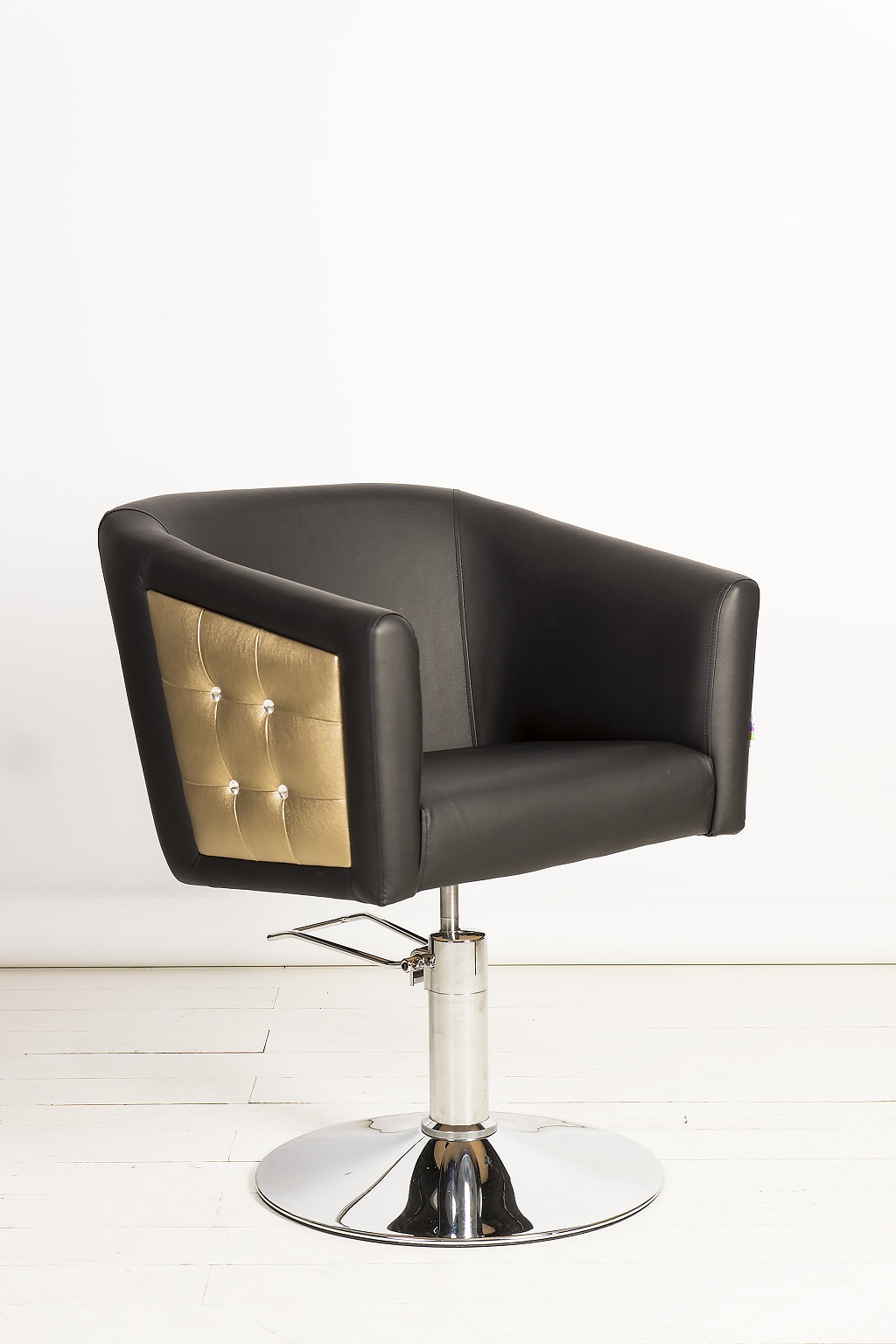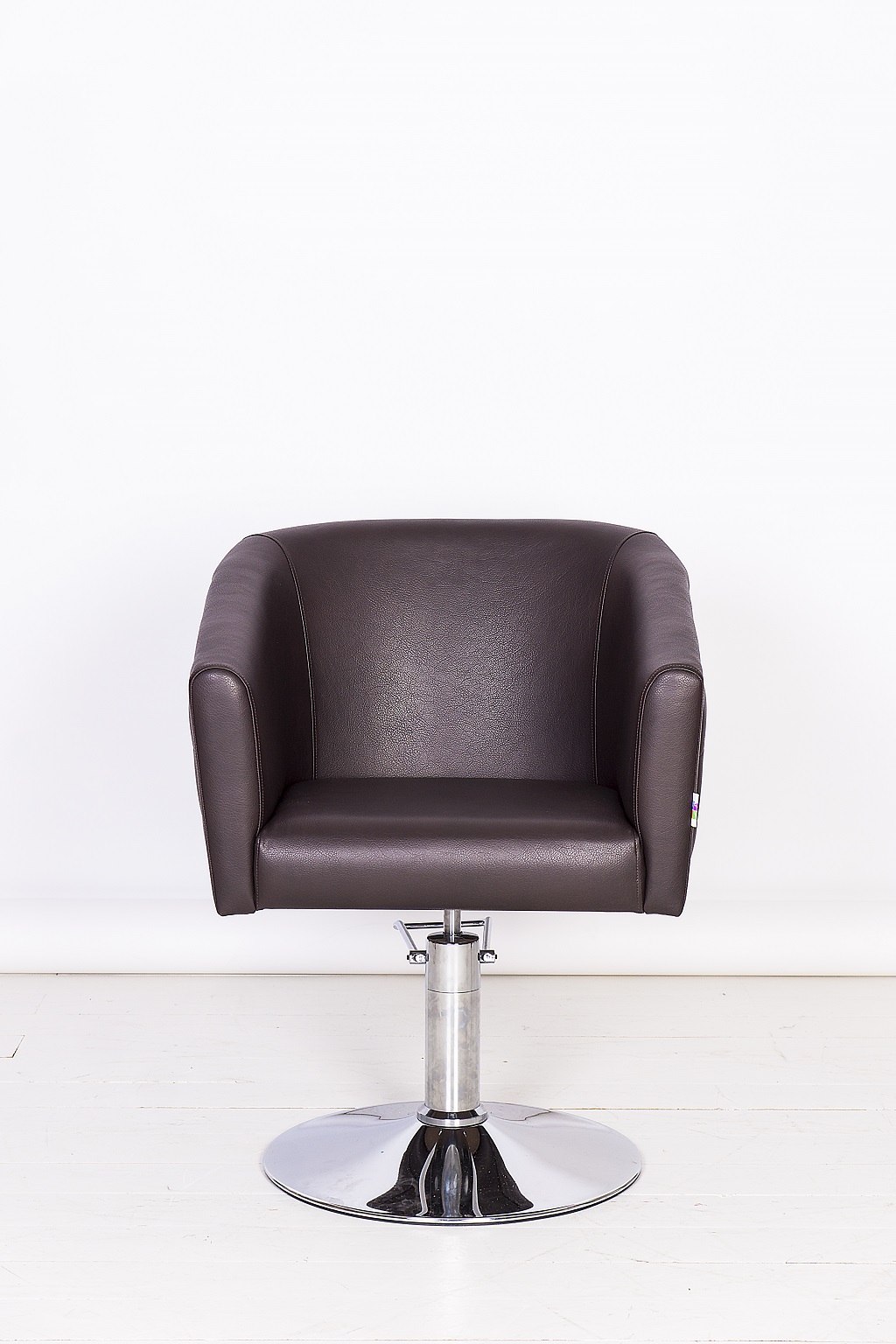 Кресло обшито экокожей высокого качества, материал не боится пятен от краски и укладочных средств. Все следы творческой работы мастеров легко удаляются с поверхности изделия.