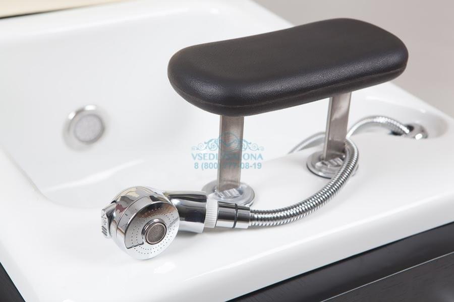 Педикюрный комплекс SD-A010 выполняется из высококачественных материалов, что способствует длительному периоду эксплуатации, а также прочности конструкции. Клиент во время процедуры в салоне красоты имеет возможность насладиться СПА процедурами, а также комфортным пребыванием. Определенную часть в этом способствует и данное мебельное изделие, находясь в котором клиент может отрегулировать свое положение, поднять кресло вверх или вниз, опустить подлокотники. Кроме того, конструкция снабжается дополнительной высокой подушкой под ноги, дабы облегчить рабочий процесс мастера.
