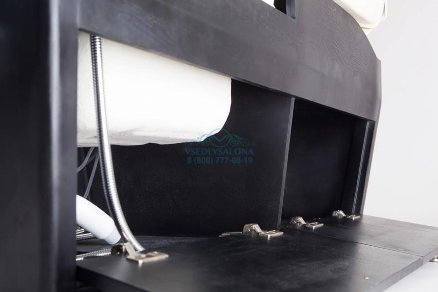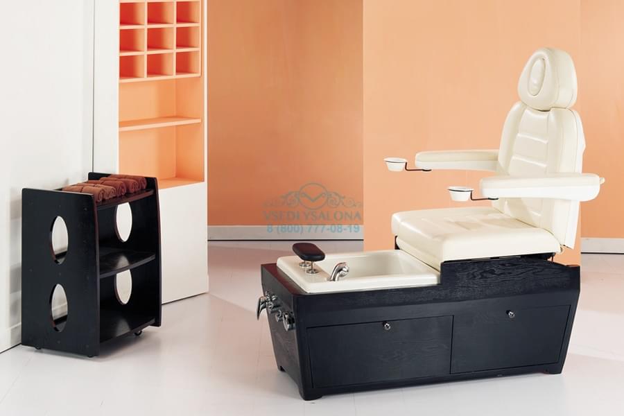 Педикюрное СПА кресло Трон высокий предоставляет собой высокую конструкцию, при помощи которой можно обеспечить комфортные условия СПА процедуры для клиента. По сравнению с аналогами на мебельном рынке, конструкция имеет ряд преимуществ: