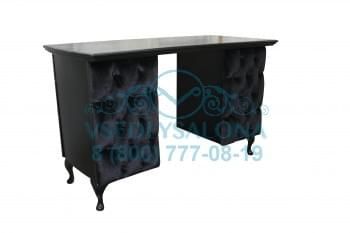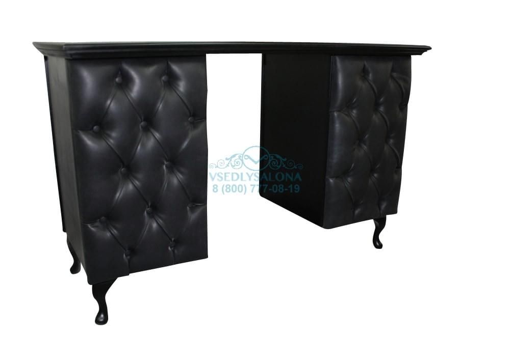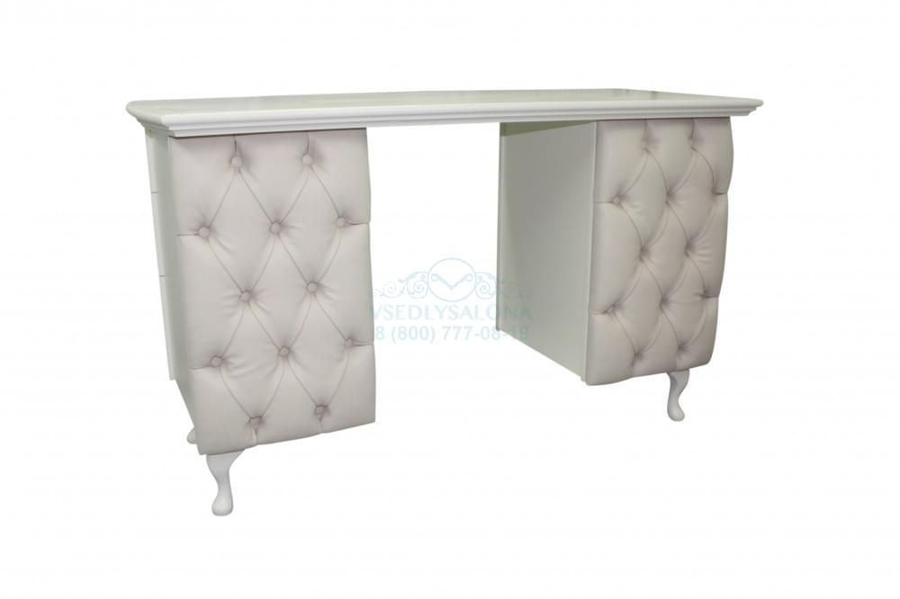 Габариты изделия составляют 1260×755×560, материал обивки – искусственная кожа, основной каркас выполнен из букового массива, цвет белый с кремовым оттенком, а для декорации используются кнопки из хрусталя. Все перечисленные характеристики можно изменить по желанию заказчика, используя индивидуальные замеры, любой цвет и материал.