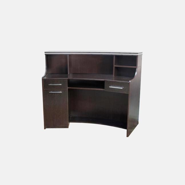За стойкой достаточно места для деятельности администратора, а множество полок и шкафчиков позволят хранить всю документацию, даже личные вещи админа. Размер ресепшен – небольшой, поэтому в любом пространстве найдется для нее место.