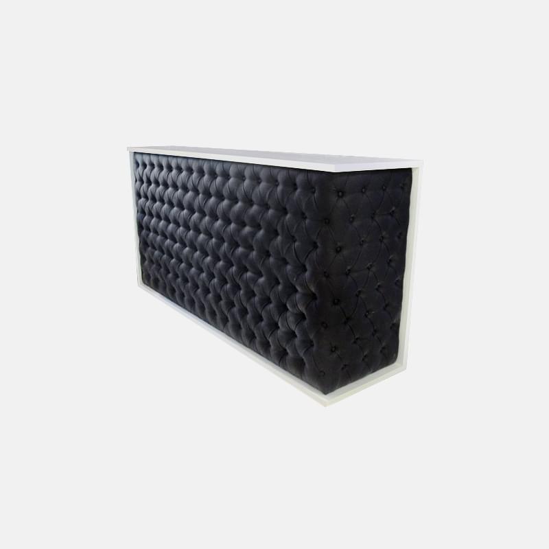 Стойка администратора «Fiore» – это модель в классическом стиле, выполненная в виде буквы «Г». Наружная поверхность обшита искусственной кожей высшего класса. Кожа декорирована объемной каретной стяжкой. Каркас стойки выполнен из ДСП.