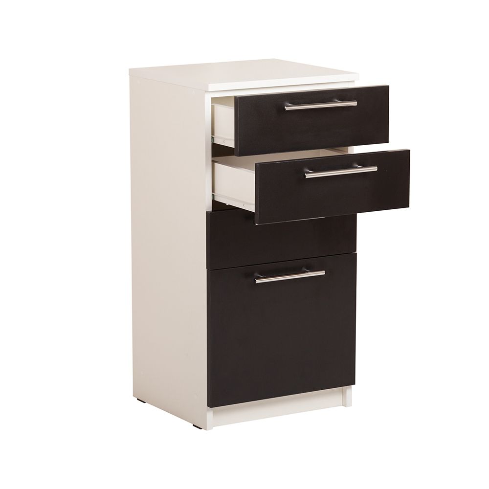 Этот комплект состоит из крепкого, сильного каркаса, нижнего ящика, трех полок, креплений, роликовой системы движения, пластмассовых ножек, ламинированного ДСП, хромированных ручек в виде эллипса, плюс окрашен лаком отечественного производства. Стиль незауряден, однако точно впечатлит взыскательного клиента, эстета, где важна чистота, компактность и сравнительно небольшой запас бюджета. Атрибут достойный внимания покупателей и бизнесменов. Надежное на сто девять процентов. Фишка кроется в создании индивидуальной ноты хорошей компоновки.