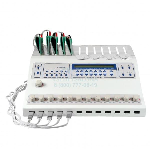 Миостимулятор с 10 каналами, 20 отведениями и набором многоразовых электродов диаметром 6 см. (10 шт.) и 9,5 см. (20 шт.). Аппарат позволяет настраивать параметры воздействия в автоматическом и ручном режимах с возможностью выбора степени интенсивности (от 1 до 400 Гц) и времени (от 0,5 до 9,9 сек.) воздействия для каждого канала отдельно. Прибор имеет монополярный и биполярный формат работы с длительностью импульсов воздействия от 100 до 500 мкс.