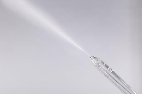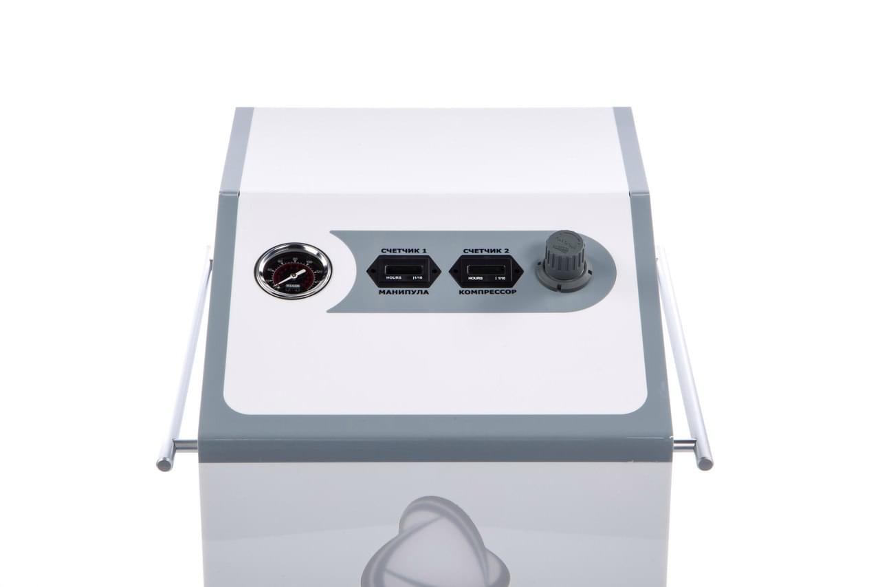 Благодаря мощному встроенному компрессору и манипуле с тремя микро соплами, газожидкостный поток из микро капель разгоняется до сверхзвуковых скоростей. Приближение насадки к поверхности кожи приводит к нарастанию давления, и жидкость проникает глубоко в кожу через волосяные фолликулы, протоки потовых и сальных желез. Направляя газожидкостную струю на кожу под разным углом и на различном расстоянии, специалист может добиться как эффекта мягкой, атравматичной эксфолиации, так и глубокой шлифовки шрамов (рубцов) (в т.ч. келоидных), растяжек. Сильная струя жидкости, сталкиваясь с поверхностью кожи, бережно снимает верхние слои ороговевших клеток и, вместе с ними, остатки макияжа, излишки кожного сала и пыль, после чего проникает в дерму, насыщая и обогащая ее. Приближением, удалением манипулы и изменением давления можно регулировать глубину воздействия и тщательно обрабатывать проблемные участки кожи (нарушение пигментации, морщины, растяжки и др.)