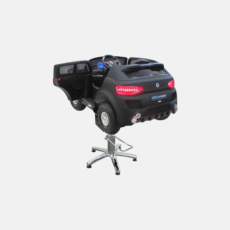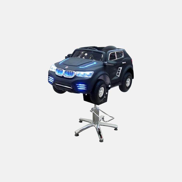 Детское парикмахерское кресло Авто БМВ АТ. Цвет черный матовый. На гидравлике. Электромобиль питается от 6 v аккумуляторной батареи. Машинка оснащена светящимися фарами, сигналами,подсветкой кузова, музыкой и ремнем безопасности.
