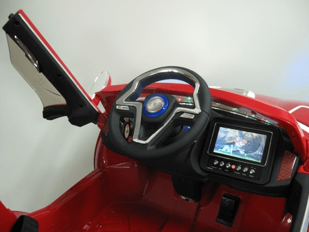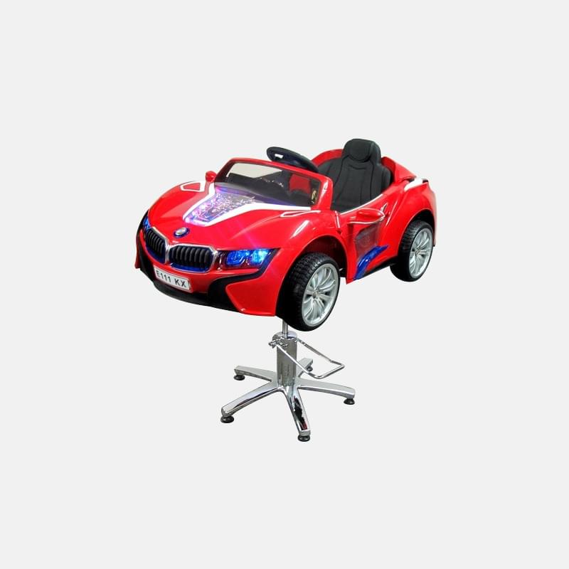Детское парикмахерское кресло Авто БМВ Е111 КХ. Цвет красный. На гидравлике. Электромобиль питается от 6 v аккумуляторной батареи. Автомобиль оснащен встроенным сенсорным ЖК-монитором с возможностью загрузки мультиков и музыки. Машинка оснащена светящимися фарами, сигналами, музыкой и ремнем безопасности. Размер машинки 125*80*53 см.