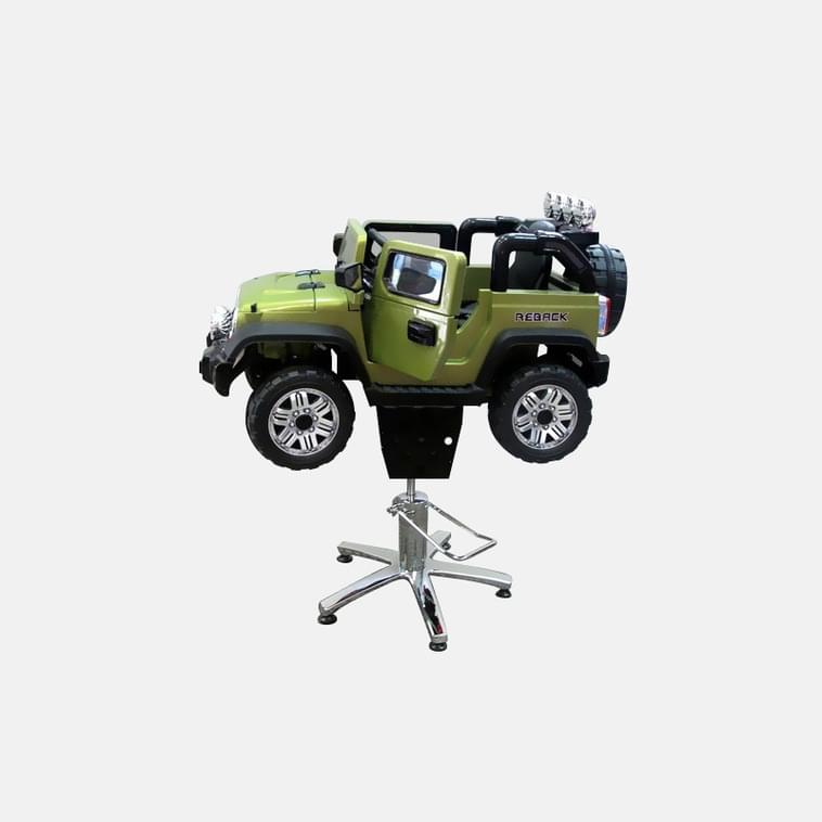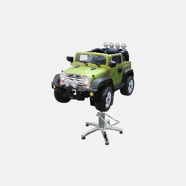 Детское парикмахерское кресло Авто Джип. Цвет зеленый. На гидравлике. Электромобиль питается от 6 v аккумуляторной батареи. Машинка оснащена светящимися фарами, сигналами,подсветкой кузова, музыкой и ремнем безопасности.