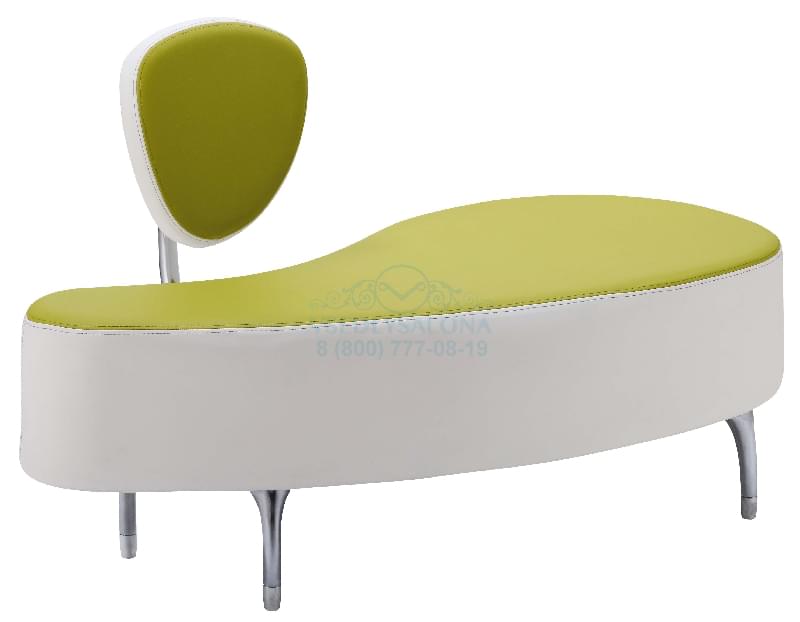 Двухместный диван для ожидания выполнена в форме капли, обтянут искусственной кожей. Имеет небольшую мягкую спинку округлой формы. Металлические ножки.