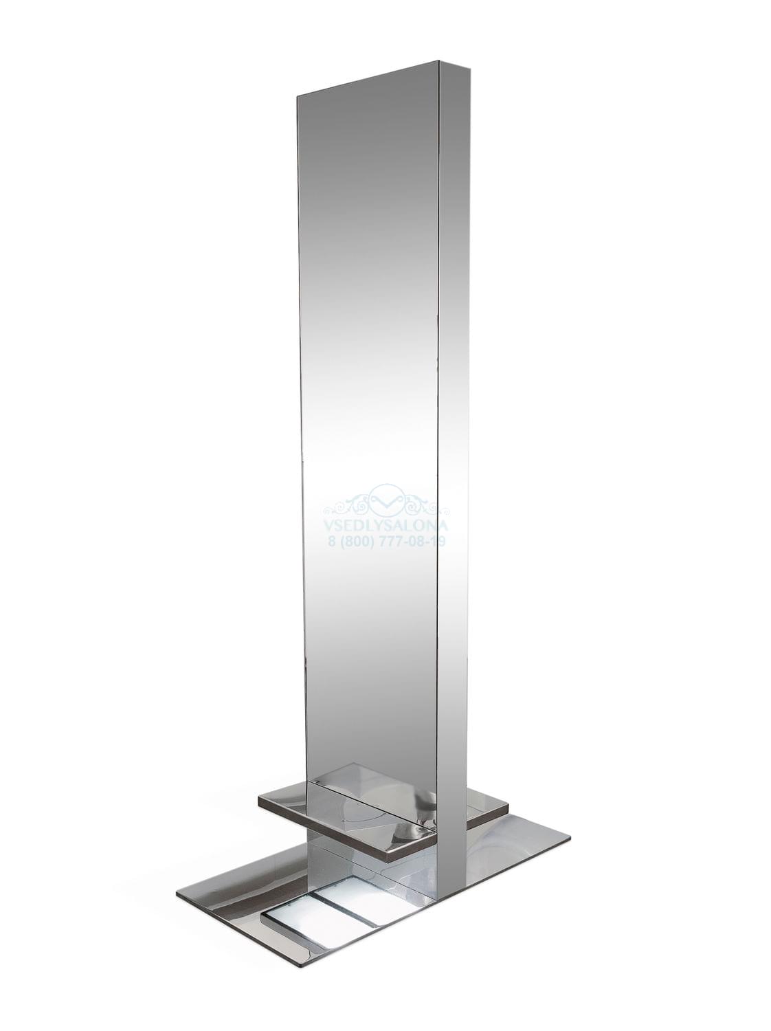 Зеркало парикмахерское сдвоенное, блестящая металлическая подножка и декоративный напольный квадрат.Размер:49x98x198