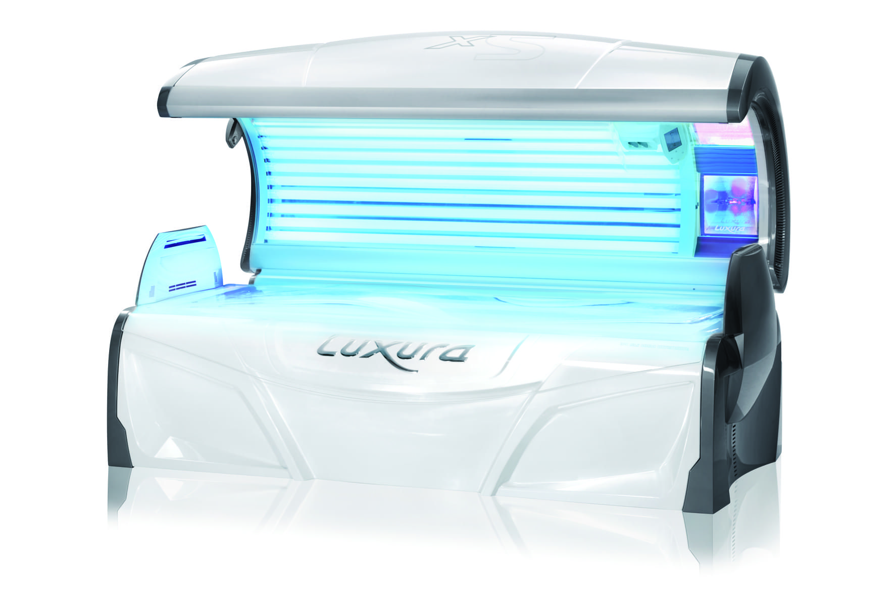 Имеется система охлаждения тела для удобства клиента, стереоколонки, антипылевые фильтры и система охлаждения ламп, благодаря которой повторное использование солярия становится возможным уже спустя несколько минут после предыдущей эксплуатации. Это особенно важно для тех студий загара, где большое количество клиентов и важно работать максимально оперативно.