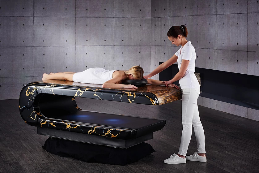 Инфракрасный процедурный cтол "SQUARE", выполненный из мрамора и оснащенный инфракрасным подогревом прекрасно подходит как для релаксации, так и для выполнения различных косметологических процедур. Он может использоваться для аюрведы, хаммама, пилинга, массажей с использованием горячих камней и многого другого. При производстве стола используется цельный блок черного мрамора. Конструкция устойчивая, прочная и износоустойчивая, а ее мобильность обеспечивается встроенными роликами. Стол отличается элегантностью цветовым и современным дизайном. Он имеет эргономичную форму, отличные эксплуатационные характеристики и отличается непревзойденным комфортом. Этого удалось добиться за счет идеально ровной атласной поверхности, которая вытесана вручную. Особую роль в качестве процедур и расслаблении играет подогрев мрамора. Стол "SQUARE" оснащен современной системой обогрева. Ее особенность заключается в полном отсутствии электромагнитного излучения. Теплый камень не только нагревает тело, но и активизирует процессы регенерации организма. А за счет того, что используется цельный мраморный блок, поверхность является абсолютно гигиеничной. Еще одним неоспоримым преимуществом конструкции является простота установки. Для того чтобы начать использовать стол, не нужно задействовать дополнительное техническое оборудование.