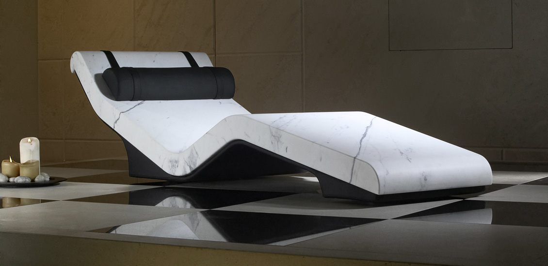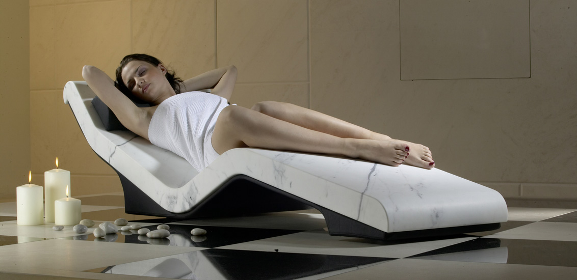 Сочетанием превосходного дизайна и эксклюзивной СПА-технологии является ложе из монолита мрамора "Cleopatra". Ложе оснащено системой подогрева, за счет которого мрамор нагревается и преобразует тепло в целебное инфракрасное излучение. Его воздействие приумножает эффективность СПА-процедур, а также способствует снятию стресса, мышечного напряжения, спазма. За счет этого улучшается самочувствие, обмен веществ, выведения токсинов, процессы регенерации и клеточного обновления. Степень нагрева поверхности мрамора регулируется при помощи высокотехнологичной системы многозонного прогрева. В данной модели лучшим образом сочетаются инновационные технологии и традиции. Ложе из цельного мрамора может быть установлено в СПА-салоне, а также сауне, бассейне и даже не открытом воздухе. Мобильность шезлонга обеспечивается за счет встроенных роликовых колес. Параметры работы регулируются при помощи цифрового дисплея. Возможно исполнение в нескольких цветовых решениях – черном, молочно-белом, бежевом.
