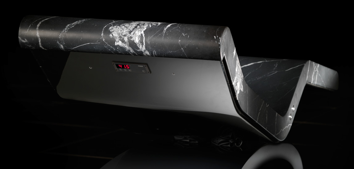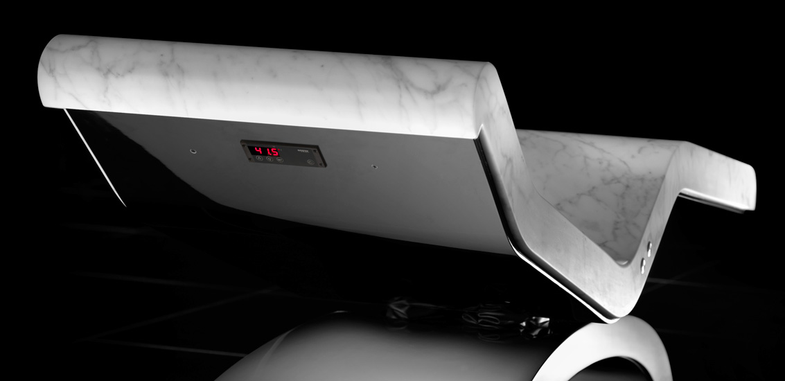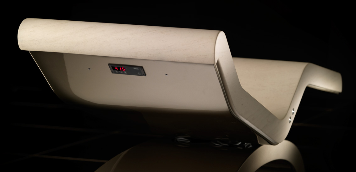 Cочетает в себе эргономичный дизайн и инновационные СПА-технологии. Ложе изготовлено из монолитного мрамора, который оснащен высокотехнологичной системой многозонного прогрева. Нагреваясь, мрамор преобразовывает тепло в длинноволновое инфракрасное излучение. Воздействуя на организм человека, излучение оказывает целебное действие. Процедуры, которые проводятся на мраморном ложе, направлены на стимуляцию процессов регенерации и клеточного обновления. Они способствуют расслаблению души и тела, позволяют избавиться от болей в спине и суставах, состояния стресса и хронической усталости, а также помогают полноценно отдохнуть и набраться сил. А за счет того, что излучение способствует улучшению кровообращения, обмена веществ, выведению шлаков, увеличению выработки коллагена улучшается состояние кожи и организма в целом. Шезлонг закреплен на износоустойчивой и прочной металлической основе. Для заказа доступны ложа в нескольких цветовых решениях – молочно-белом, бежевом, черном. Ложе возможно перемещать благодаря наличию роликов.