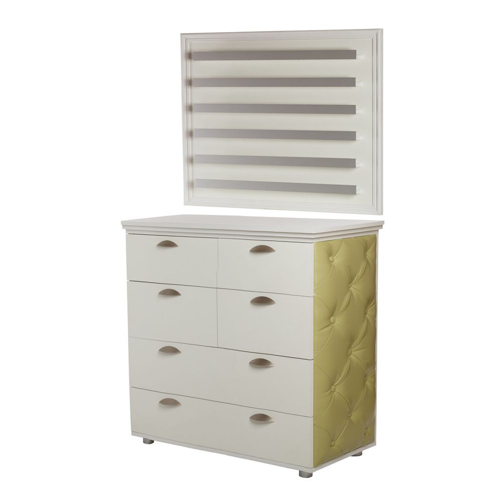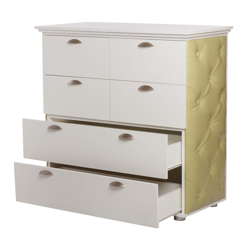 Боковины комода имеют декоративные вставки из винилискожи.