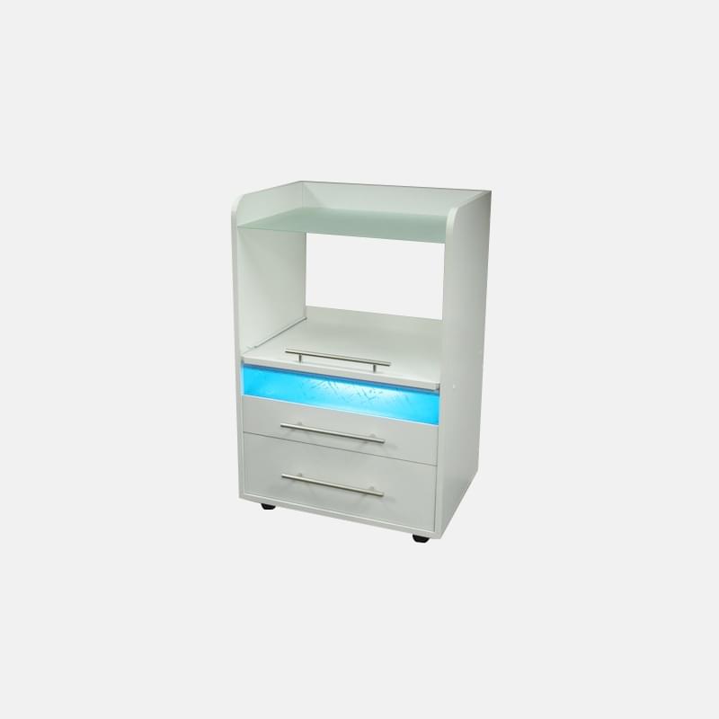 Маникюрная стойка арт. 6000 представляет собой классическую, простую, но универсальную модель. С ее помощью можно выполнять маникюр в любых условиях, не беспокоясь о комфорте. Стойка выполнена в черном цвете, каркас – металлический, но боковые стенки сделаны из пластика. Размер – небольшой, но достаточный для хранения инструментов, плюс – есть три выдвижных ящика.