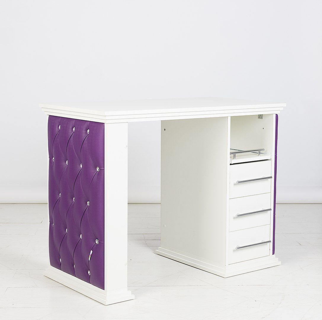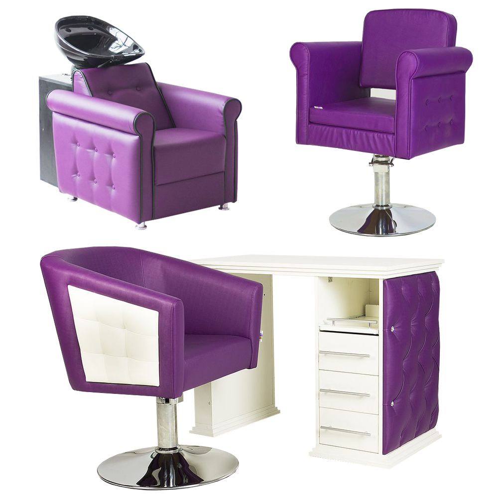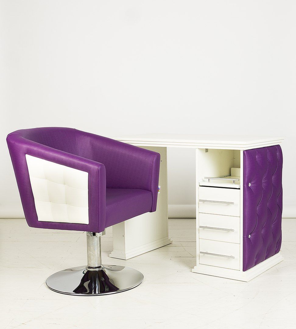 Комплект «Символ» включает в себя четыре предмета – стол для мастера маникюра и кресло для клиента, парикмахерскую мойку и парикмахерское кресло. Все предметы изготовлены в гламурном стиле. Производитель гармонично сочетает ламинированный ДСП, искусственную кожу и хромированную сталь. Элементы из искусственной кожи декорированы каретной стяжкой, дизайн стола выполнен с использованием стразов.