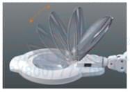 Лампа-лупа — яркая лампа дневного спектра; трехкратное увеличение с зоной пяти-