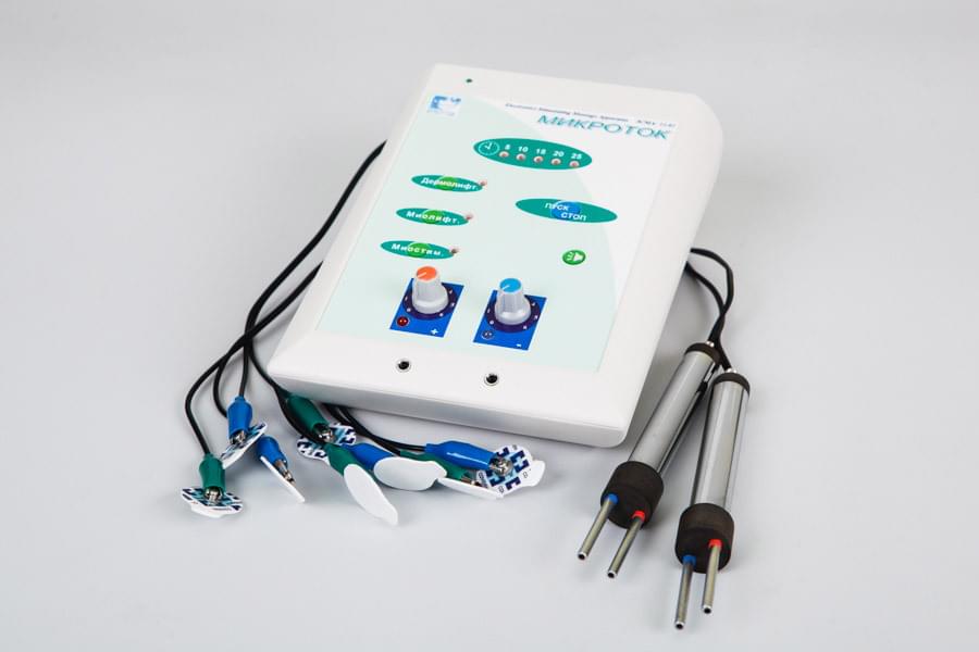 ЭСМА 12.02 МИКРОТОК – высокоэффективный аппарат микротоковой терапии по доступной цене. Особенностью аппарата является блок интерференционной терапии. Аппарат обеспечивает работу трех целевых процедур: интерфернционный дермолифтинг, миолифтинг, миостимуляция. Одновременно для каждой из целевых процедур аппарат обеспечивает эффект электрофореза на двух выходных каналах. Микротоковая терапия может проводиться пробами и микротоковыми перчатками. Дополнительно аппарат может быть дооснащен блоком ультразвукового пилинга лица. МИКРОТОК имеет 2 независимых канала. Контактная система позволяет подключать: пробы, микротоковые перчатки, до 8 электродов с липким гелиевым слоем для лица, или до 8 электродов из токопроводящего силикона для тела.