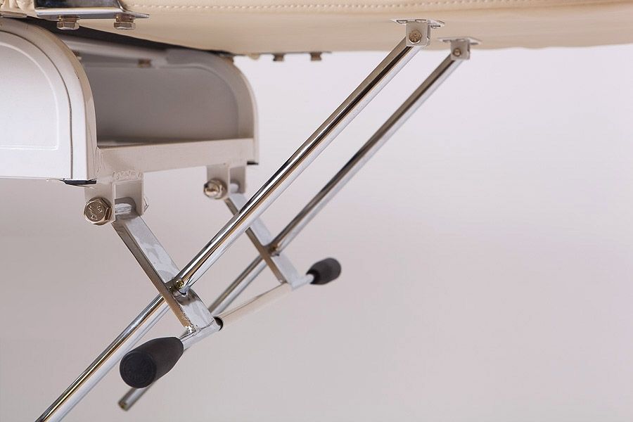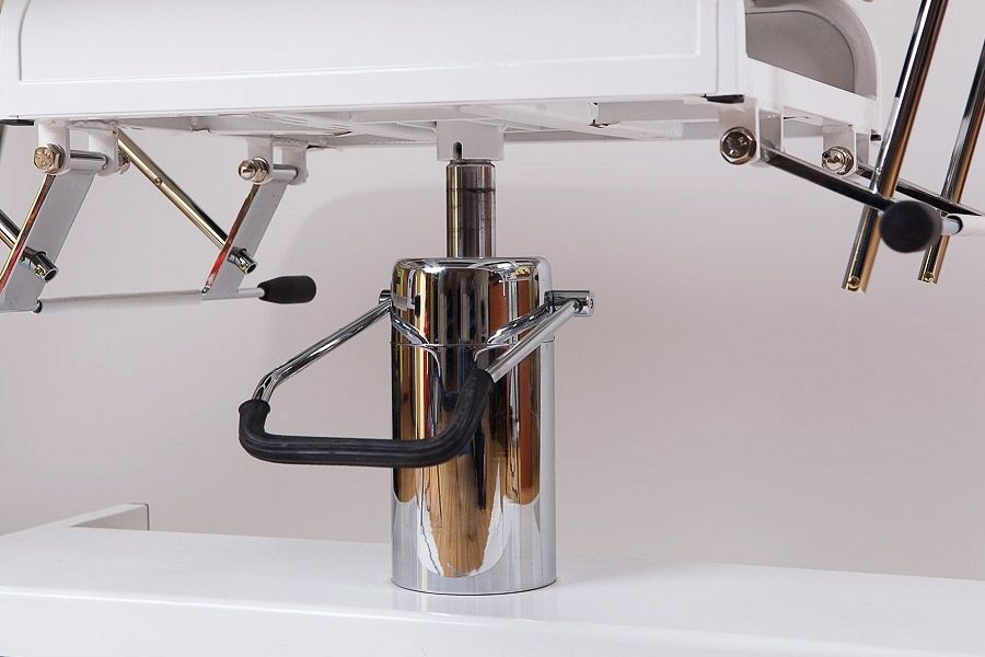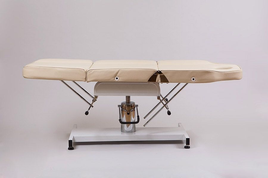 Изделие оснащено гидравлическим механизмом, позволяющим подбирать оптимальную высоту для каждой конкретной процедуры и обеспечивающим удобное размещение клиента любого роста.