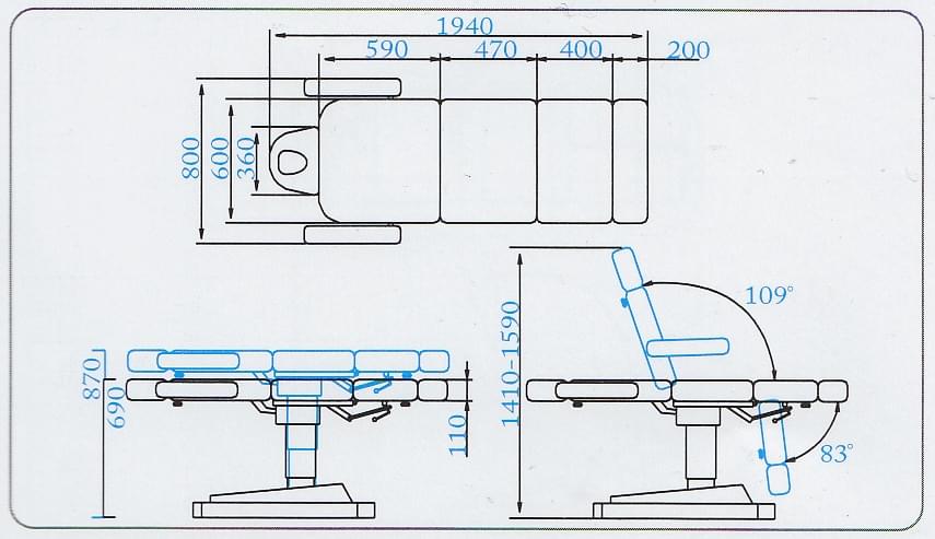 Размер (ДхШхВ): 1940х800х690...1590 мм