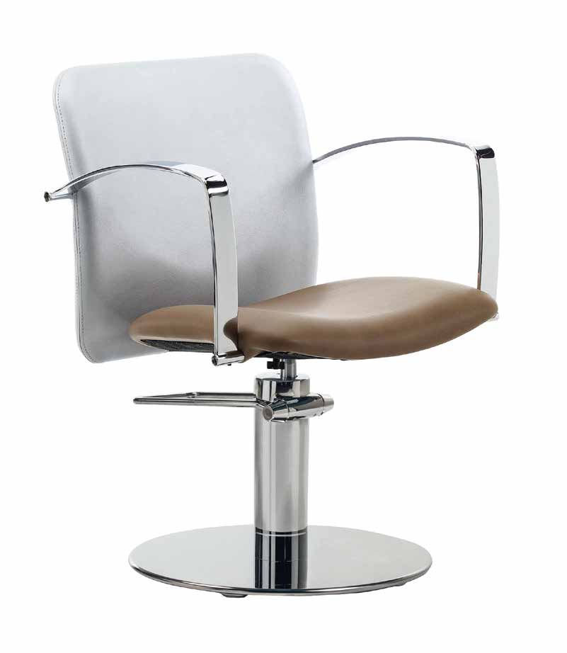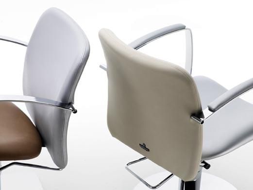 Кресло для клиента, выполнено из высококачественного поролона, каркас обтянут искусственной кожей, алюминиевые подлокотники полностью из металла или с декоративными накладками из кожезама. Комплектуется стационаром, гидроподъемником с основанием на пятилучье. Размер (ДхШ): 65х60