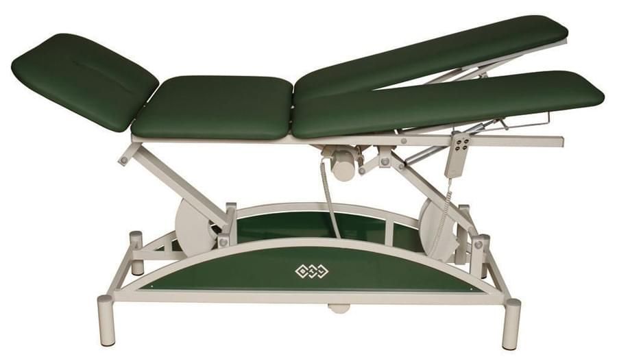 Этот моторизованный стол имеет регулируемую головную секцию, среднюю и разделённую ножную секции. Пневматические клапаны регулируют наклон ножных секций. Стол оснащен 2 моторами для электрической регулировки высоты и средней секции. Как и стандартная версия, имеет пульт и отверстие для лица.