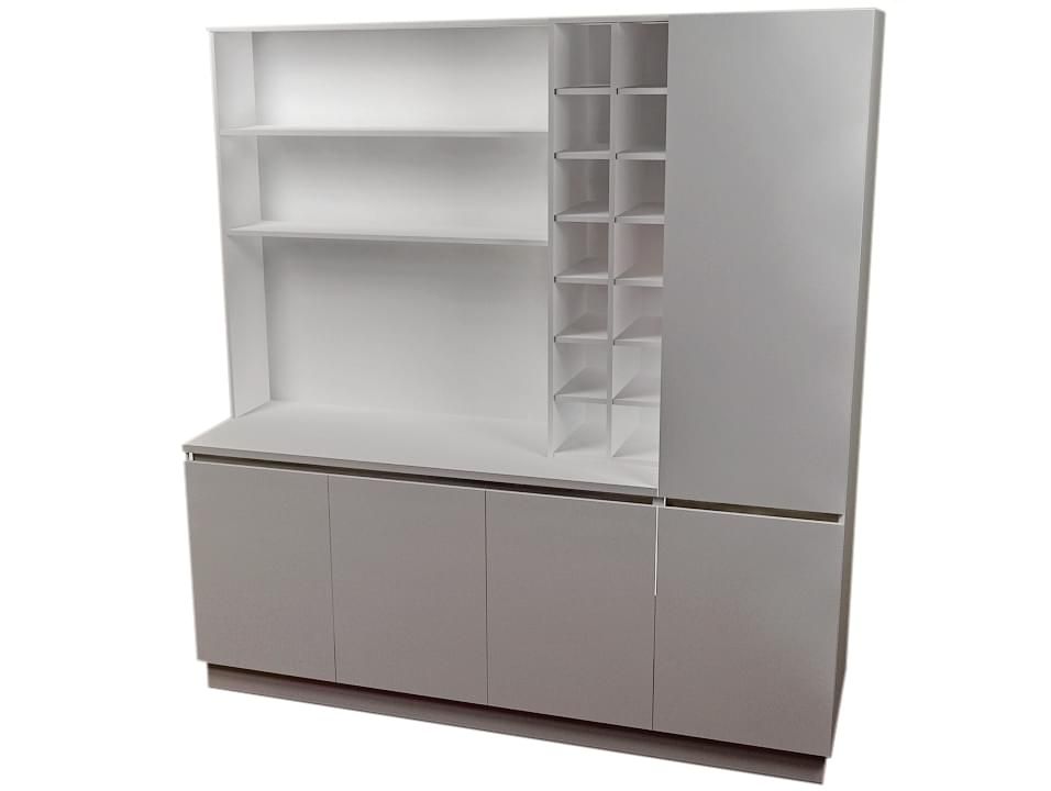 Администраторская стойка «Соната» сразу же привлекает к себе внимание. Каретная стяжка с мягкой текстурой выглядит современно и стильно, придает вашему заведению статуса и изысканности. Дополнительный эффект достигается за счет использования элегантных резных ножек, выступающих в роли некоего акцентного элемента. Со стороны администратора практически всю площадь занимают полочки и дверки, где можно разместить все для работы и личные вещи, если надобность в этом есть. Цвета отделки можно выбрать практически любые, что позволяет реализовать самые креативные идеи и придать вашей парикмахерской или салону красоты больше индивидуальности.