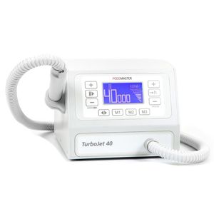 Аппарат для педикюра Podomaster TurboJet 40 представляет собой современный прибор, используемый многими профессиональными мастерами, работающими в косметологических центрах и салонах красоты. Данная модель оснащена встроенным пылесосом, предназначенным для сбора пыли в специальный мешок, благодаря чему работа косметолога значительно упрощается. Устройство имеет большой экран и оборудовано ультралегким наконечником с бесщеточным мотором, закрепляемым в специальном боковом держателе. На ручке аппарата расположен выключатель, который защищается от пыли силиконовым колпачком. Скорость вращения микромотора составляет 30 000 оборотов в минуту.