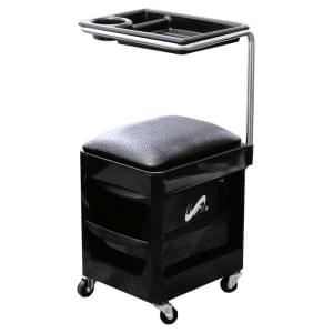 Маникюрная стойка арт. 6000 представляет собой классическую, простую, но универсальную модель. С ее помощью можно выполнять маникюр в любых условиях, не беспокоясь о комфорте. Стойка выполнена в черном цвете, каркас – металлический, но боковые стенки сделаны из пластика. Размер – небольшой, но достаточный для хранения инструментов, плюс – есть три выдвижных ящика.