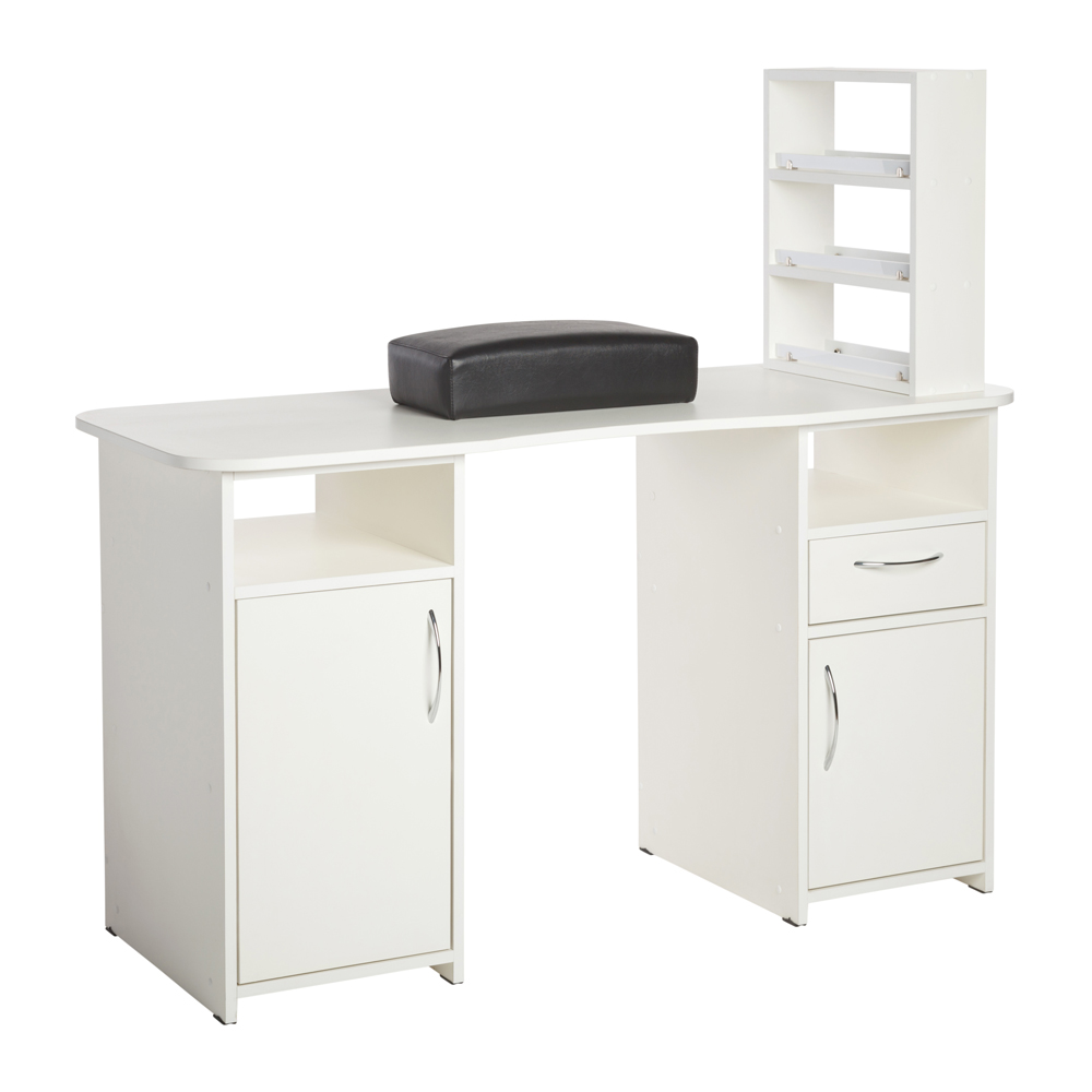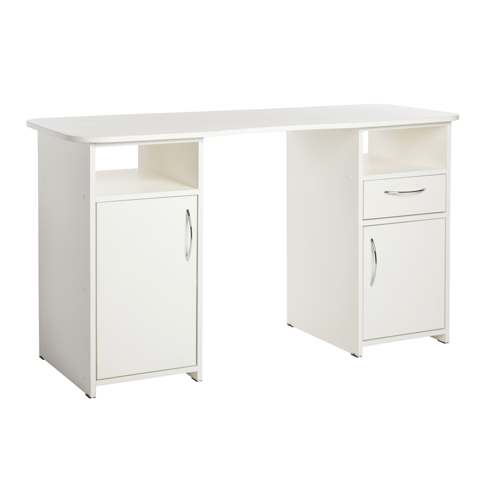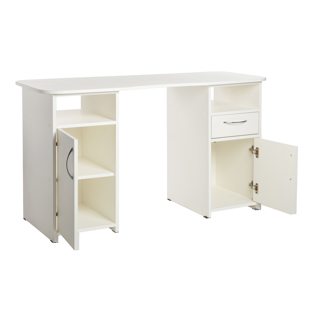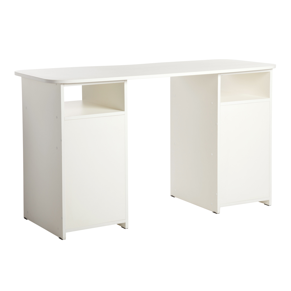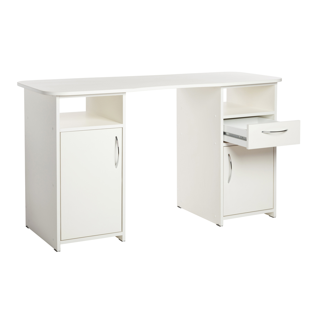 Стол двухтумбовый, в одной тумбе расположены – сквозная ниша, выдвижной ящик и распашная дверь, в другой тумбе – сквозная ниша и распашная дверь.
