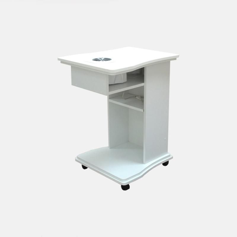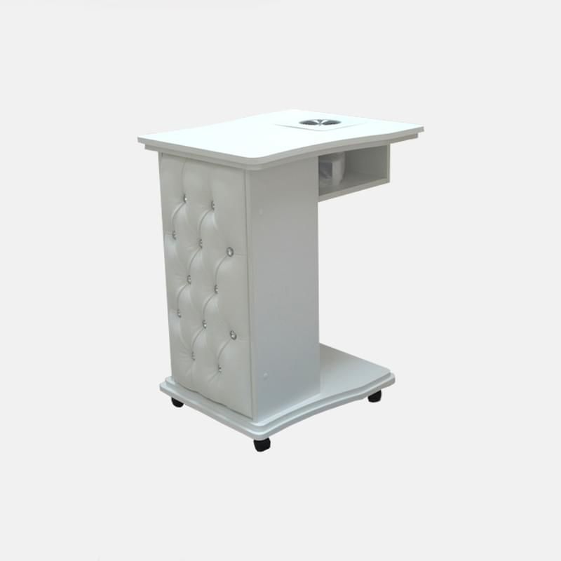 Представляем один из наиболее компактных маникюрных столов в нашей коллекции – Defeat. В нем присутствует небольшая тумба, основание и столешница. Ножки с противоположной стороны от тумбы нет, столешница вдвое меньше, чем в стандартных моделях. И несмотря на столь компактные габариты работать за таким столом действительно удобно.