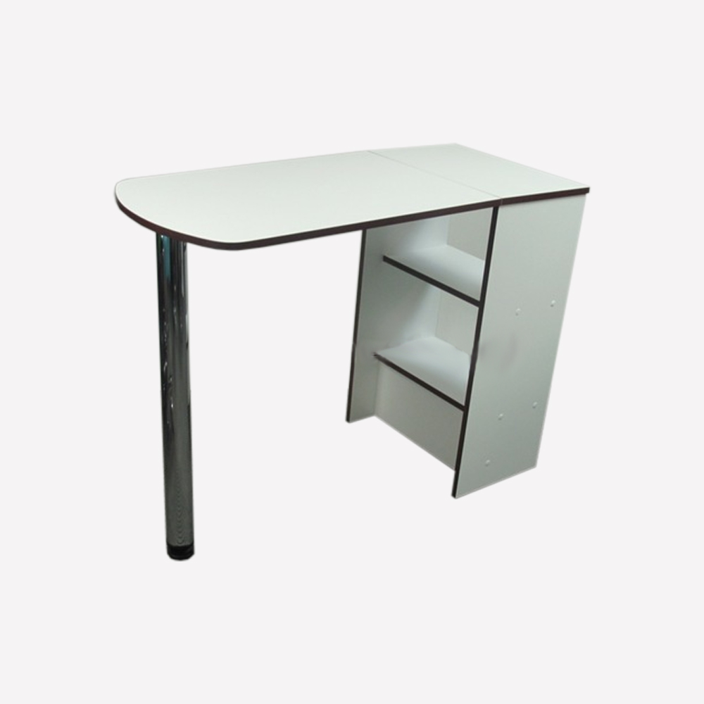 Складной маникюрный стол с тумбой "Ever" в сложенном виде занимает вдвое меньше пространства. Это экономит площадь и позволяет с комфортом работать даже в маленьких кабинетах. Есть вместительная тумба и полка под столешницей.