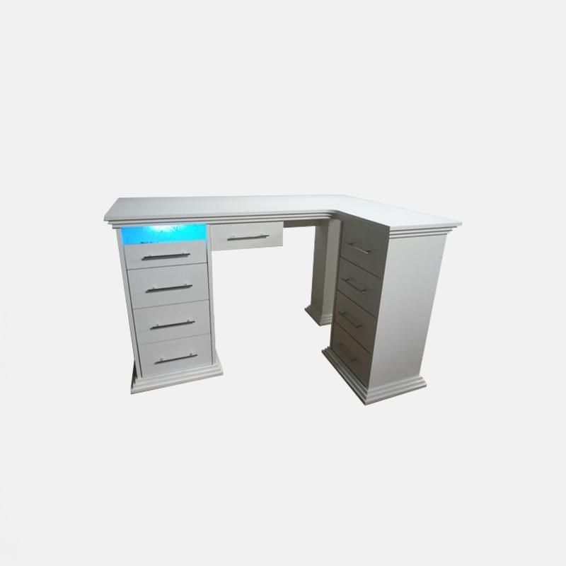 Угловой маникюрный стол "Time" с УФ-лампой оснащен двумя вместительными тумбами и большой рабочей поверхностью. Можно выбрать цвет модели из предложенных вариантов. Благодаря бактерицидной лампе можно надежно хранить инструменты.