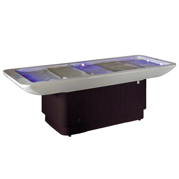 Многофункциональная кушетка для массажа с водяным секционным матрасом, ванночка с подогревом и функцией подогрева и хромотерапии (RGB-подсветка 7 цветов). Используется для влажных процедур, обертываний, пилинга, массажа, стоун-терапии и пр. Высота массажного стола регулируется через пульт, дисплей с touch screen. Прочное основание из дерева, металлический каркас. Кушетка подходит для косметических салонов, фитнес центров и салонов СПА, желающих подарить своим клиентам незабываемые моменты релаксации. Благодаря наличию хромотерапии процедура превращается в самый настоящий оздоровительный ритуал, дарящий незабываемые моменты релаксации. Идеальный выбор для всех тех, кто желает гарантировать своим клиентам эксклюзивные СПА-процедуры.