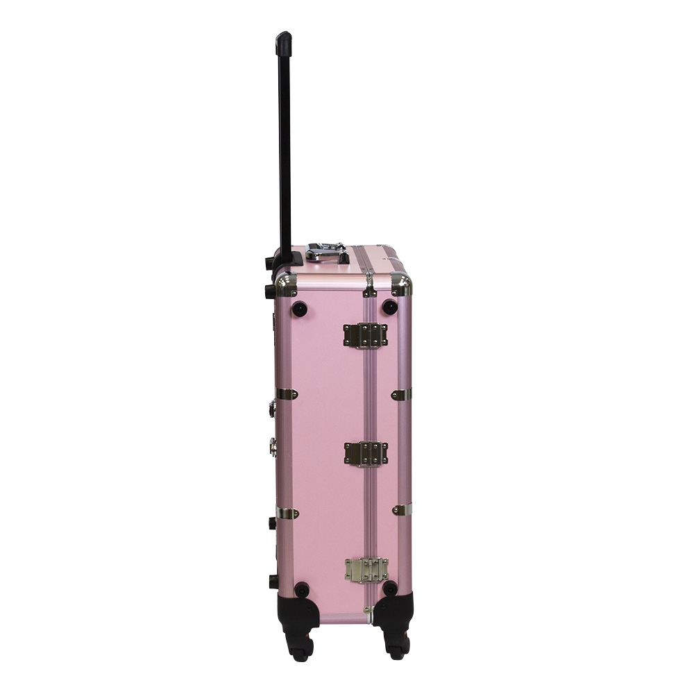 Комплектация: чемодан на колёсах с выдвижной ручкой, зеркало, 6 LED-ламп, полочки, телескопические ножки, шнур, 2 замка и ключи.