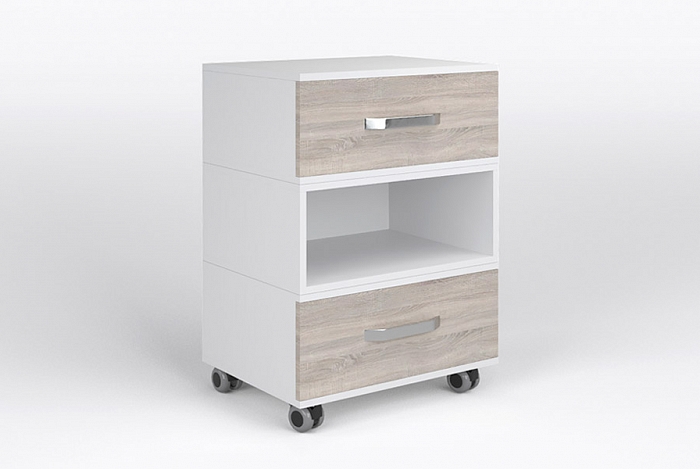 Универсальная тумба "Bingo 1+2" - представляет собой сборную секционную конструкцию. Увеличить размер тумбочки можно, добавив дополнительные открытые или закрытые элементы. Тумбочка изготовлена из ЛДСП – материала с надежным покрытием, которое не боится воздействия химических препаратов.