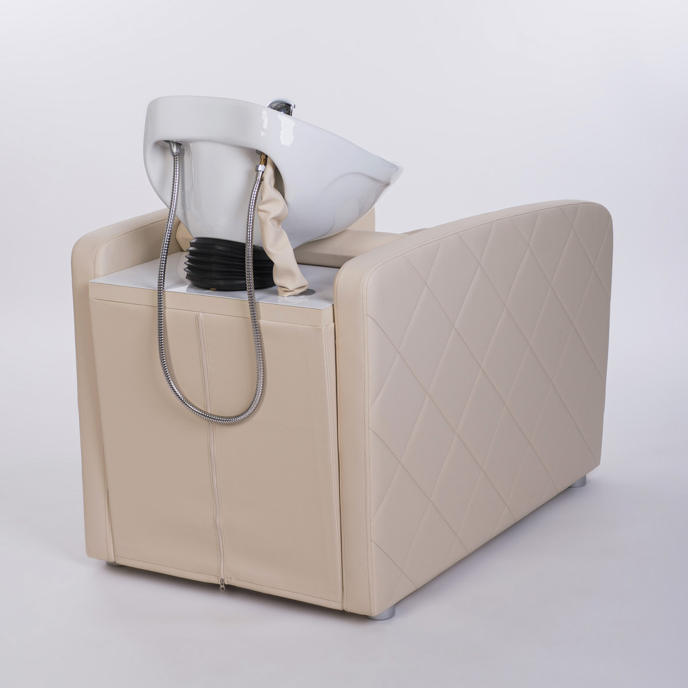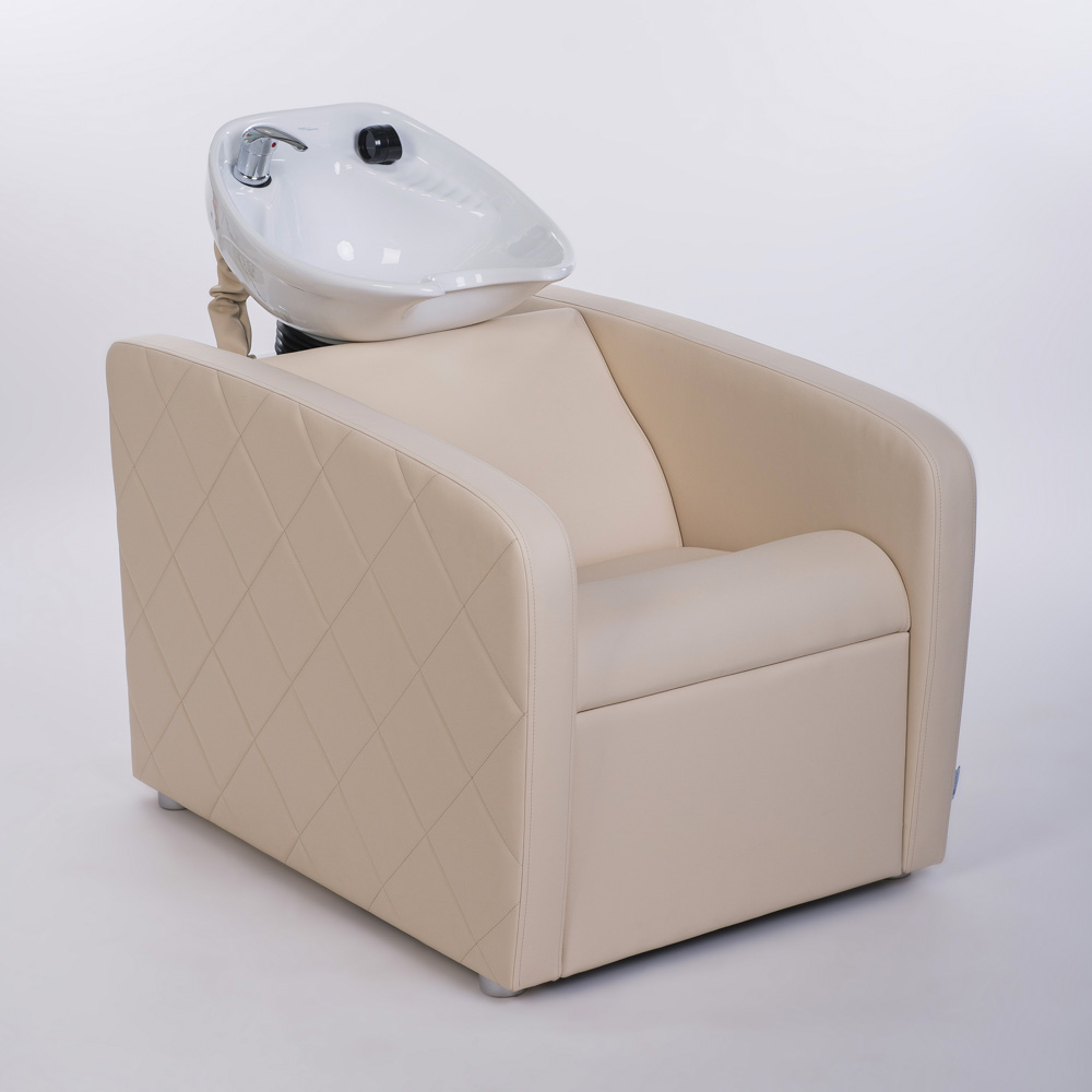 Мойка парикмахерская "Элит" - искусственная кожа с декоративными отделочными строчками по торцам подлокотников. Для установки керамических раковин различных модификаций предусмотрены универсальные отверстия. Подушка на фото приобретается отдельно.