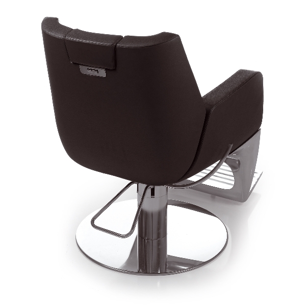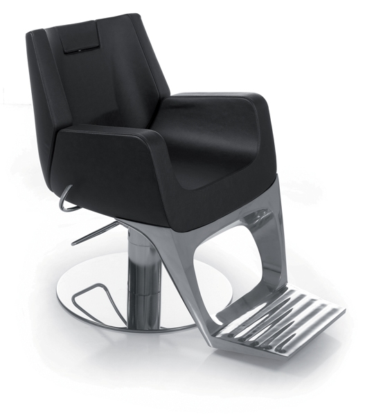 Кресло для клиента – мужское, на гидравлике с дисковым основанием. Кресло оснащено мягкими подлокотниками, регулируемой спинкой и алюминиевой подставкой для ног. Также кресло имеет регулируемый по высоте подголовник.