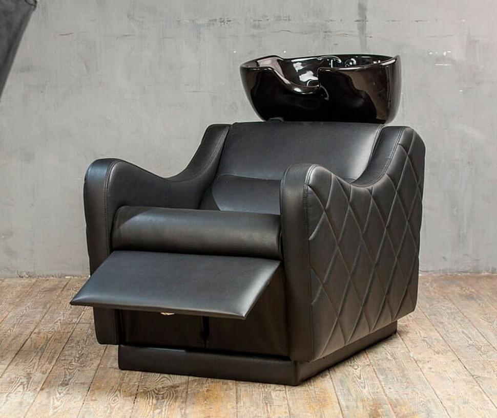 Боковая часть кресла декорирована стяжкой в форме ромбов, что придает модели строгости и элегантности.