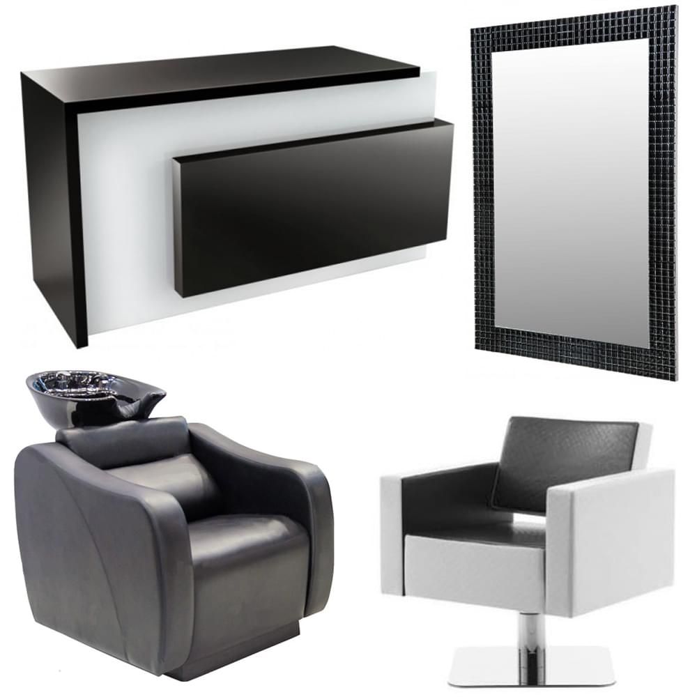 Парикмахерский комплект «Идеал» в полной мере соответствует своему названию. В комплект входит стильная стойка администратора, парикмахерское зеркало и парикмахерская мойка с креслом. Комплект выполнен в черно-белой гамме – производитель использует искусственную кожу и ламинированный ДСП контрастных оттенков. Такое дизайнерское решение смотрится современно и стильно.