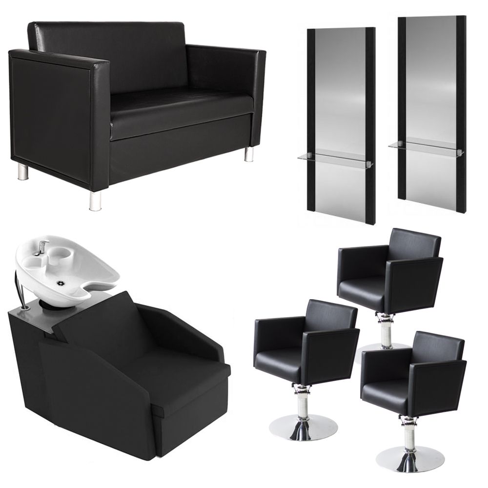 В наличии комплект черного цвета. Сочетание гладкой искусственной кожи и хромированной стали выглядит очень стильно и современно. Под заказ возможно изготовление в другой цветовой гамме, подходящей под интерьер. Приобретая готовый комплект, вы получаете возможность существенно сэкономить, и полностью обустроить парикмахерскую зону.