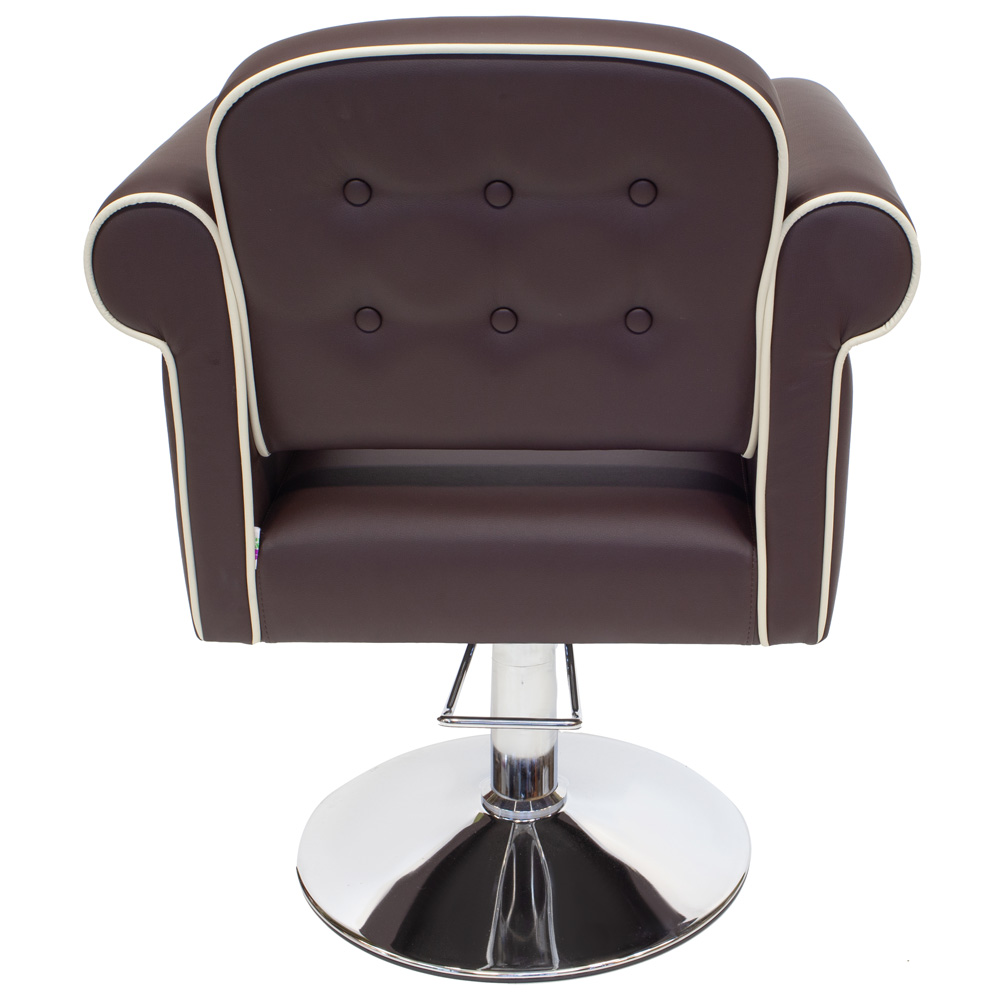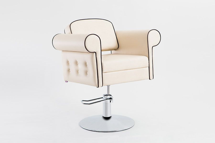 Изящество и удобство сочетает в себе парикмахерское кресло Venetto, которое придаст элегантности любому помещению. Создана модель из хорошего и прочного кожзама бежевого оттенка, а для декора использовалась каретная стяжка. Чтобы клиенты чувствовали себя комфортно, изготовитель предусмотрел широкое сидение и удобные подлокотники. Поэтому все процедуры будут протекать быстро и с удовольствием.