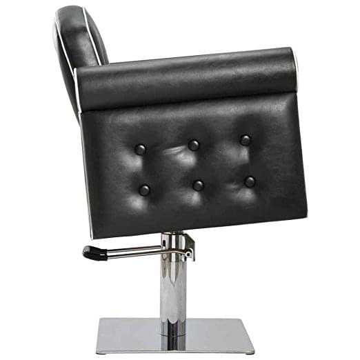 Основанием кресла стал квадрат, что делает модель безопасной, регулировать высоту можно при помощи гидравлического механизма. Обивка из темного кожзама легко очищается, а компактный размер позволяет разместить кресло даже в небольшом помещении. Теперь клиенты будут с радостью переносить даже многочасовые манипуляции с волосами, а мастера легко справляться с задачами!