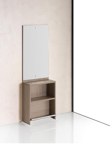 Тумба имеет одну открытую полку для хранения инструментов и косметики. Для удобства клиента производитель предусмотрел поставку под ноги, изготовленную из хромированной стали. Цвет ДСП можно выбрать любой из представленных в каталоге.