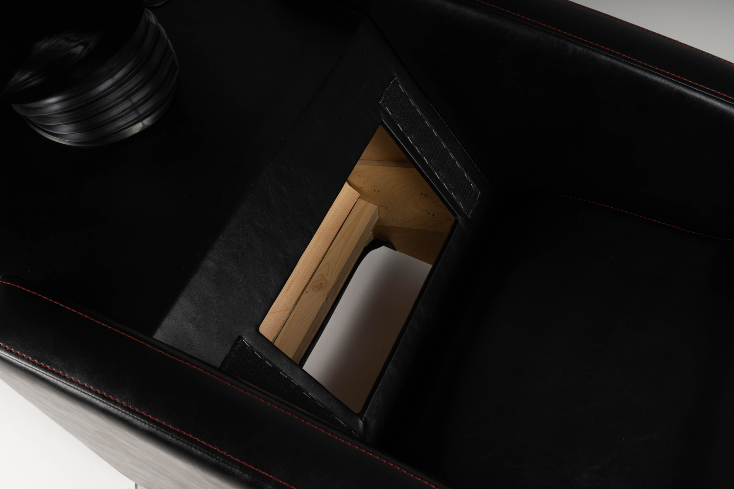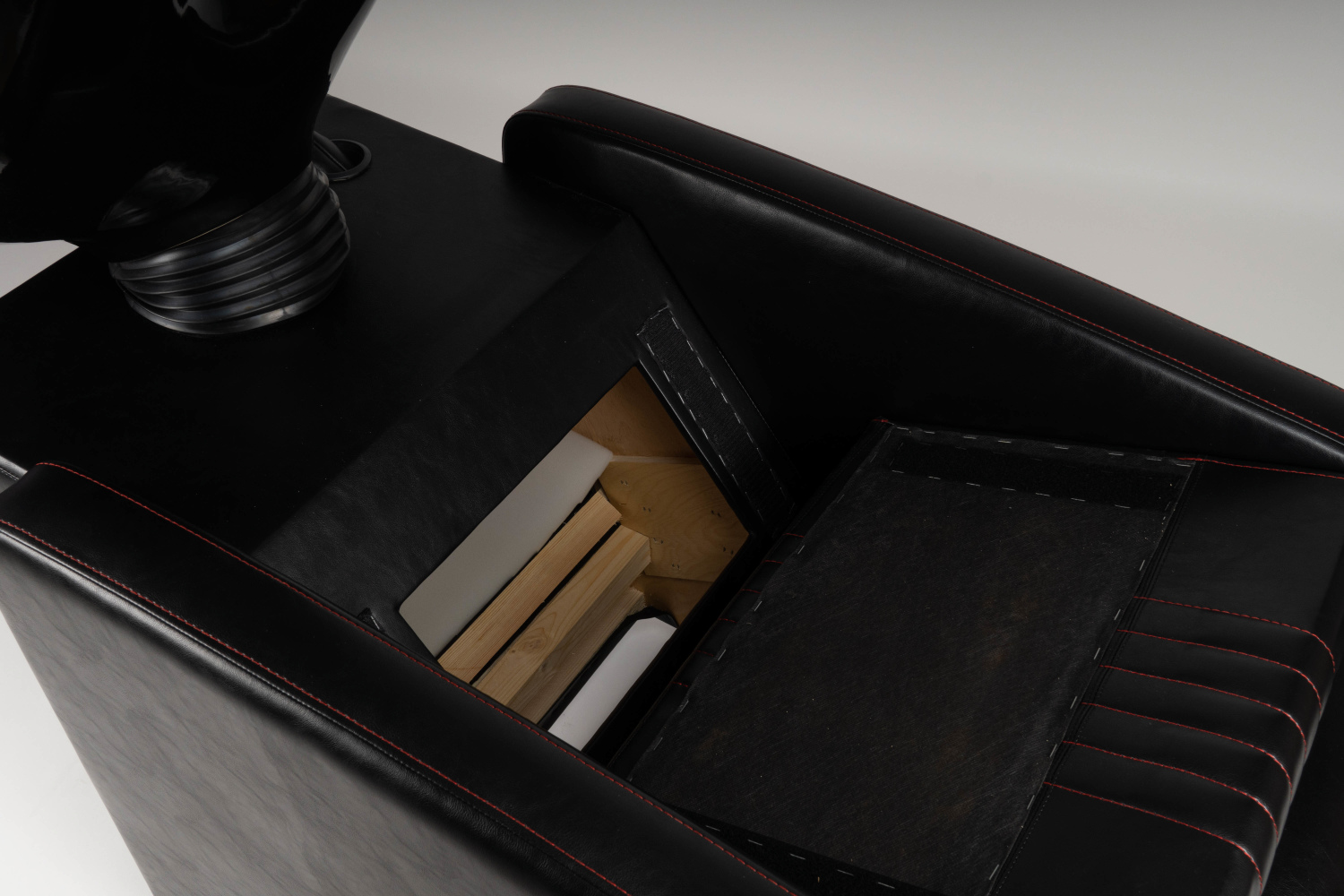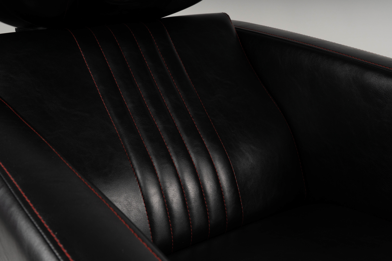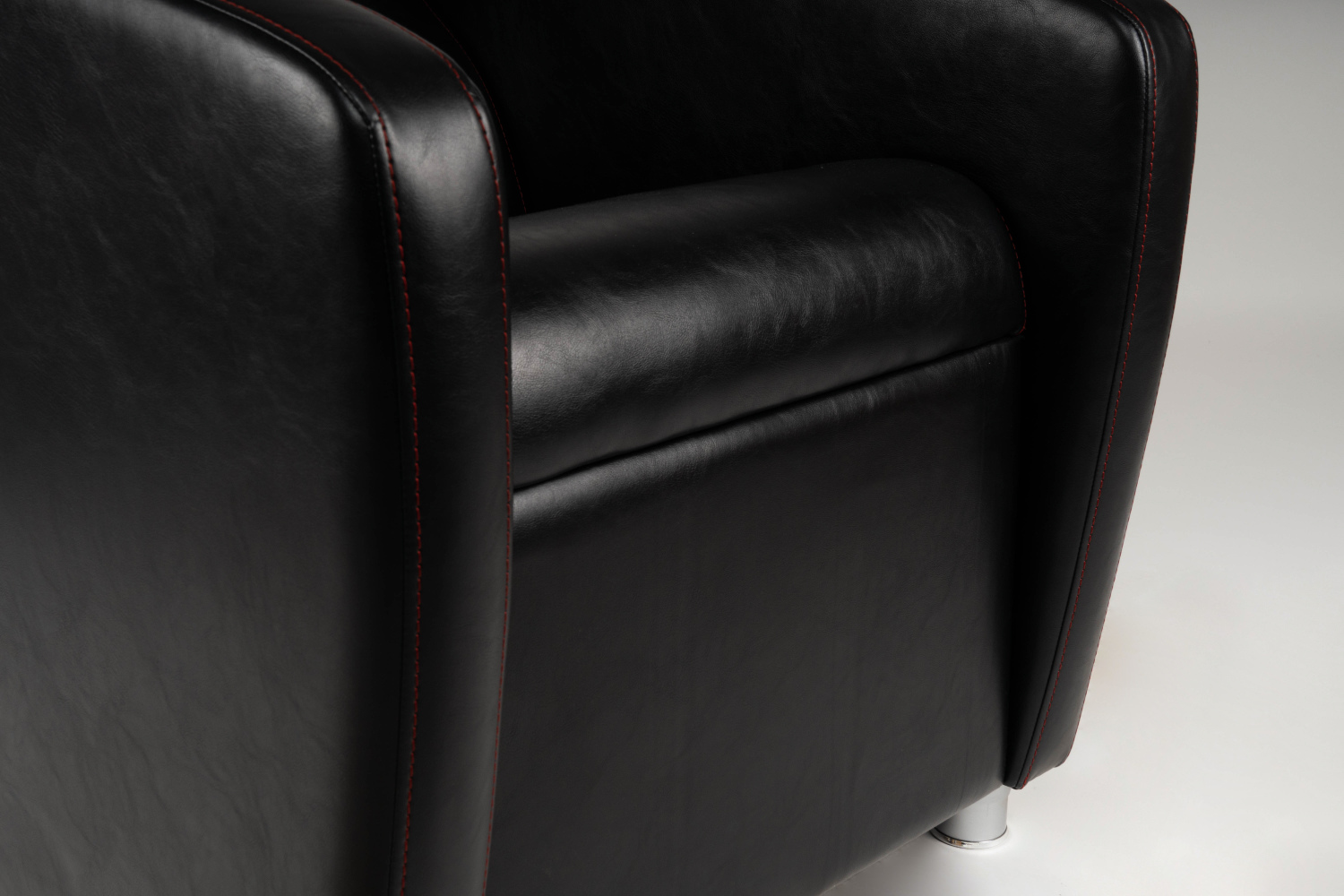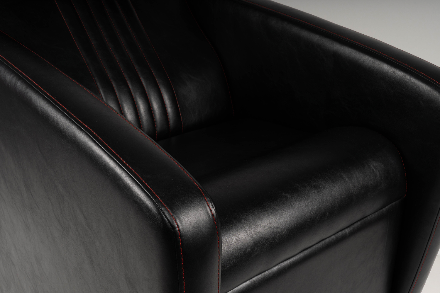 Обивка кресла - искусственная кожа с декоративными отделочными строчками на спинке и по торцам подлокотников.